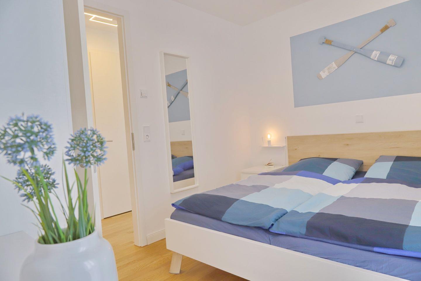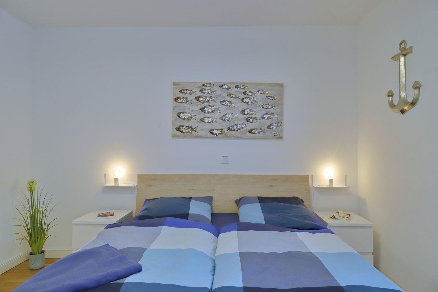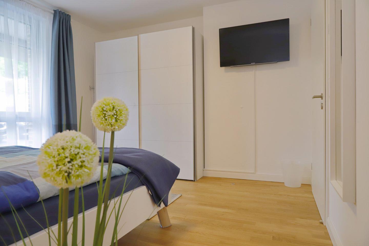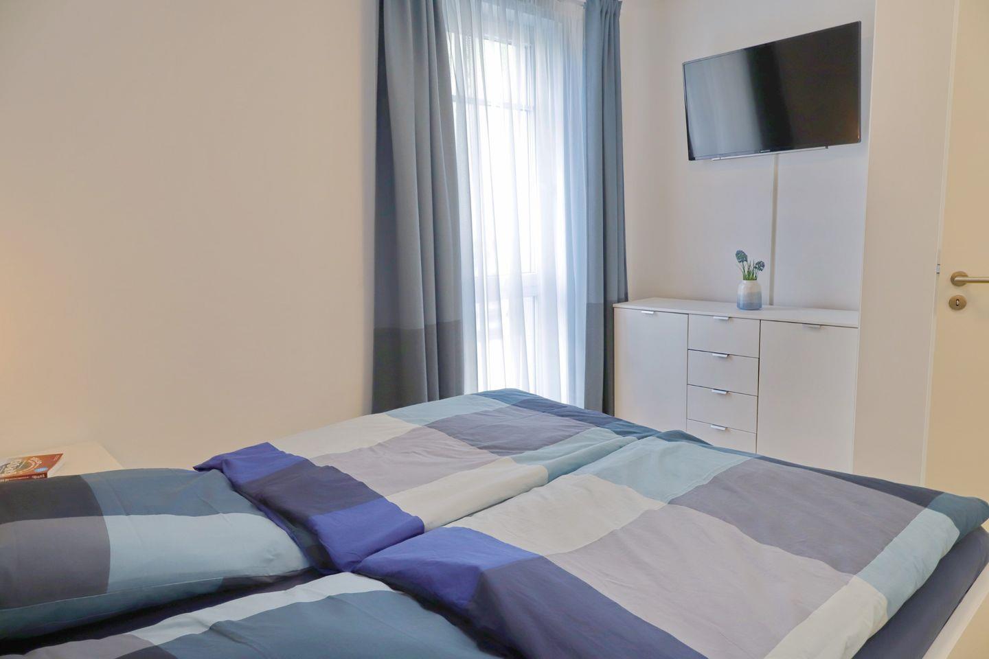 Des Weiteren gehören zwei Schlafzimmer zur Wohnung. Beide Zimmer verfügen über Doppelbetten ( Schlafzimmer 2x90x200 cm, Kinderzimmer 2 x80x200 cm )sowie Fernseher. Daneben verfügt das Ecksofa im Wohnbereich über eine Schlaffunktion. Auch ein Kinderreisebett mit Matratze steht zur Verfügung.