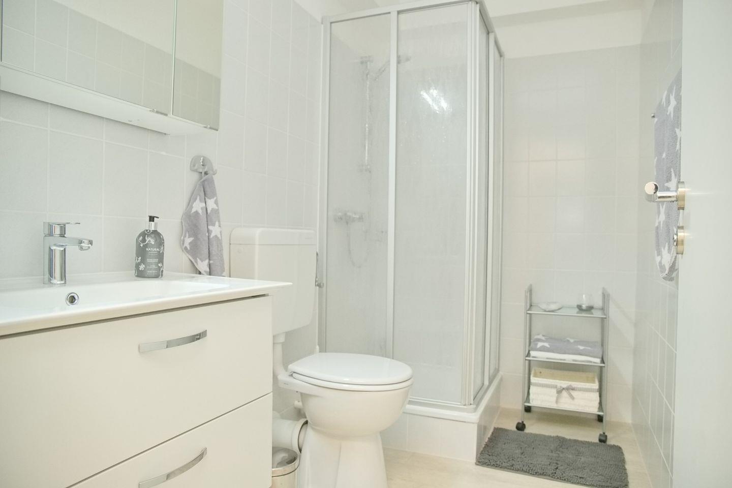 Das Appartement bietet Ihnen ein großzügiges Schlafzimmer mit Doppelboxspringbett (180x200cm), Kleiderschrank sowie Flatscreen TV und ein kleineres Schlafzimmer mit einem Etagenbett (90x200cm) ebenfalls mit einem Kleiderschrank. Zusätzlich bieten Ihnen beide Schlafräume Verdunkelungsmöglichkeiten.