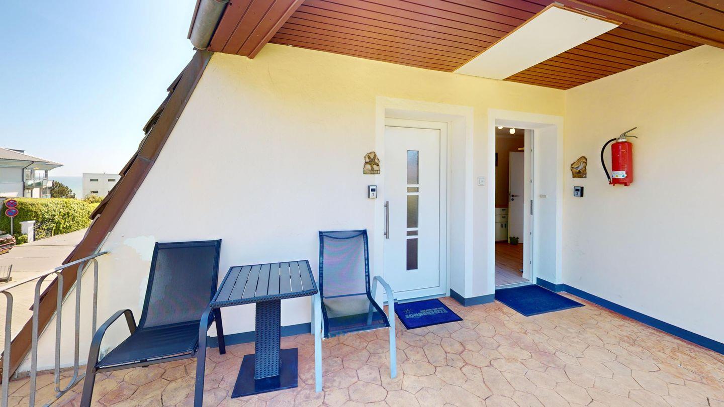 In Strandnähe befindet sich diese 45 m² große Ferienwohnung im Obergeschoss, die Platz für 3 Personen bietet – ideal für zwei Erwachsene und ein Kind.