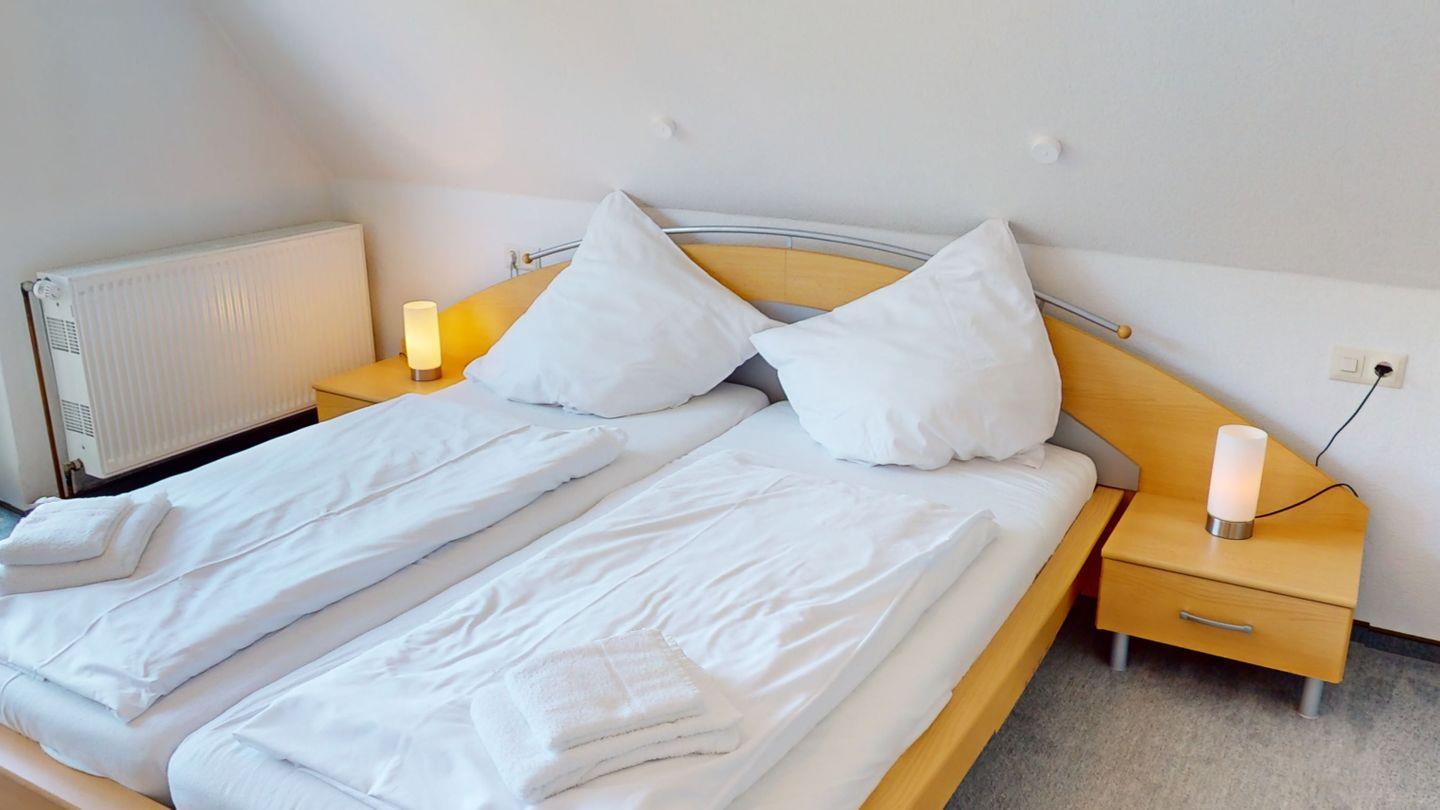 4 Personen finden in dieser Wohnung ausreichend Platz. In einem der Schlafzimmer steht zusätzlich ein Holz-Kinderbett.