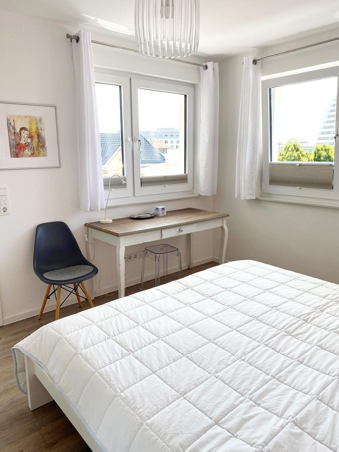 Der großzügige Wohn-, Ess- und Küchenbereich geht harmonisch ineinander über. Des Weiteren verfügt die geschmackvoll eingerichtete Wohnung über 2 Schlafzimmer mit je einem Doppelbett. Neben einem schönen Gäste-WC gibt es ein helles & freundlich gestaltetes Badezimmer mit Dusche, Wanne und WC. Ihnen steht zusätzlich zur Verfügung: ein Waschtrockner, Handtuchheizkörper, Wäscheständer, Bügelbrett und Bügeleisen, Staubsauger, Kinderhochstuhl und Reisebett, Carport für PKW, Abstellraum für Fahrräder. Eine Fußbodenheizung sorgt für wohlige Wärme an kalten Tagen. Ein kostenloser W-Lan Anschluss ist vorhanden.