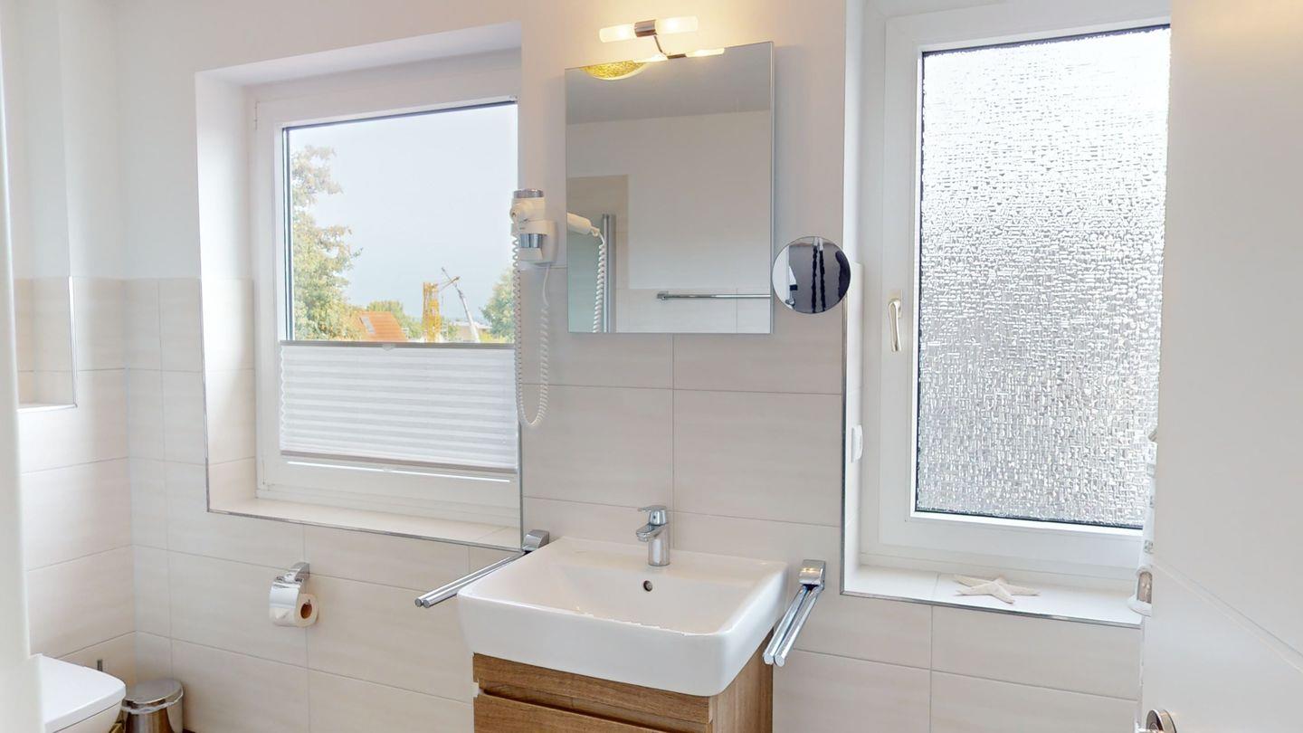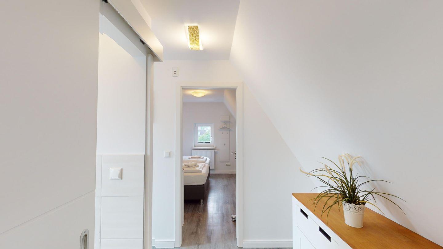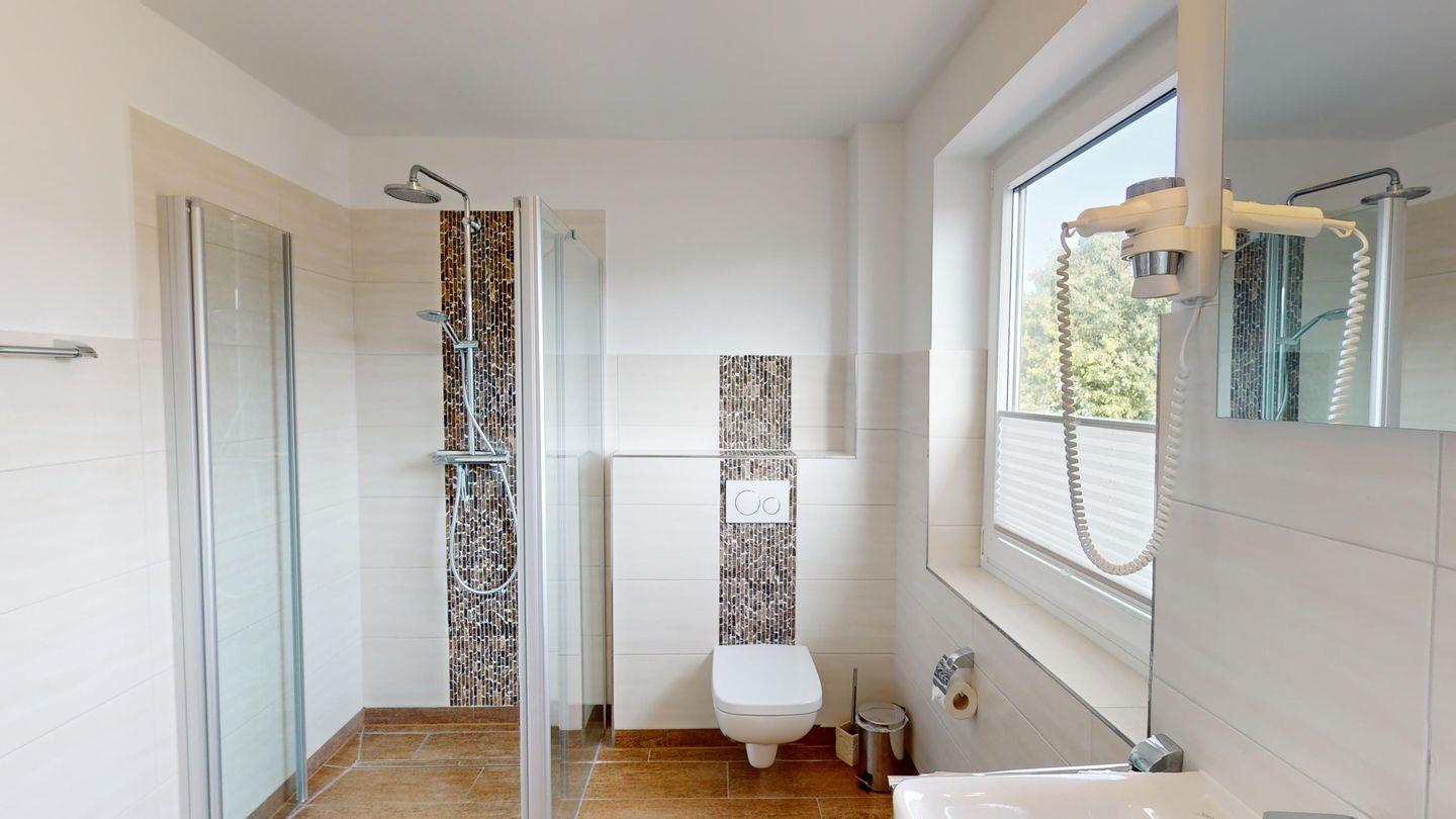 Im Dachgeschoss befindet sich ein zweites Duschbad.