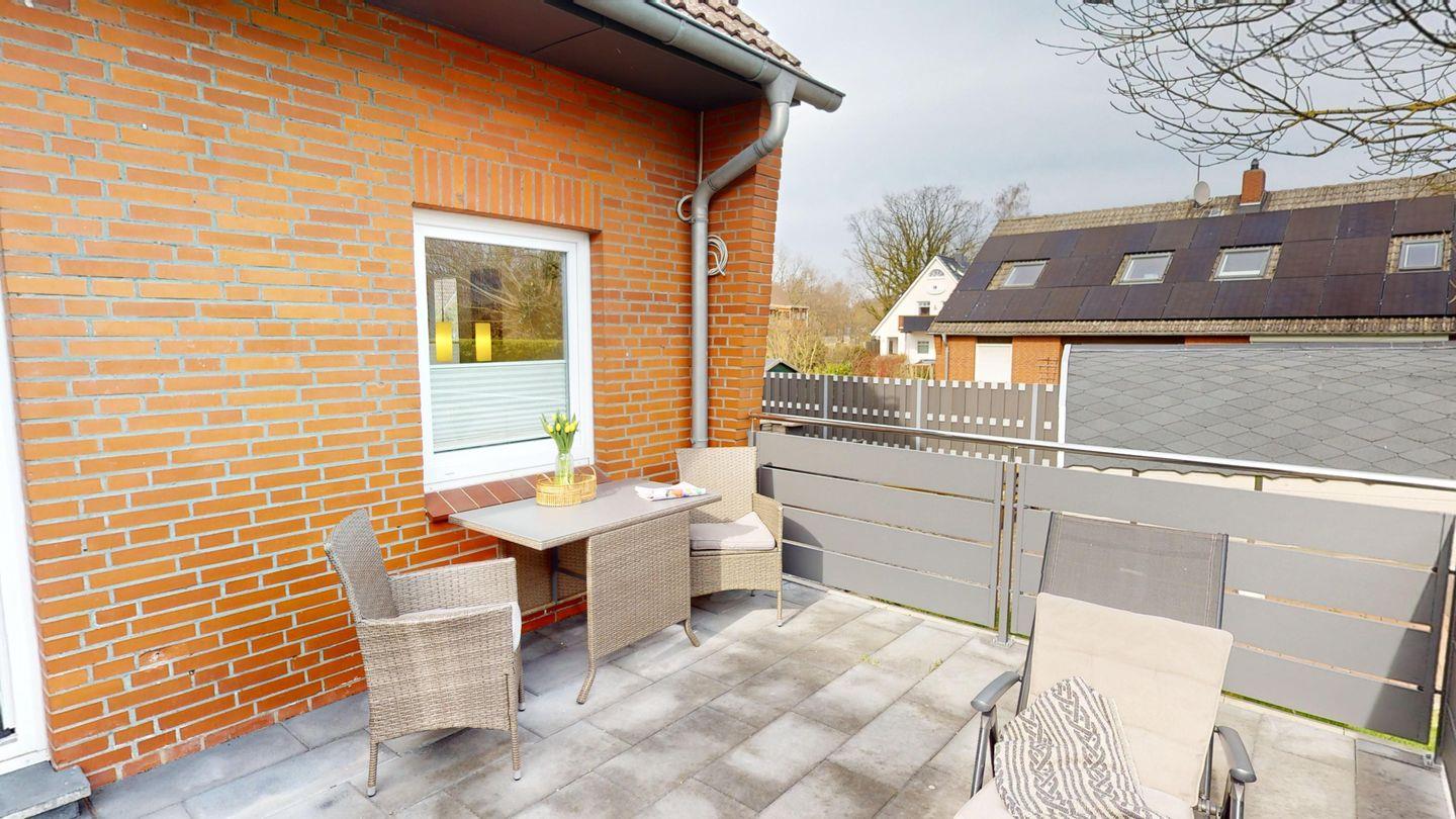 Das strandnahe Apartment mit eigenem Außeneingang hat auf der Südseite eine schöne Terrasse (18 qm), die zu einem Sonnenbad oder einem gemütlichen Grillabend einlädt. Gartenmöbel stehen ebenso zur Verfügung wie ein reservierter Pkw-Stellplatz.