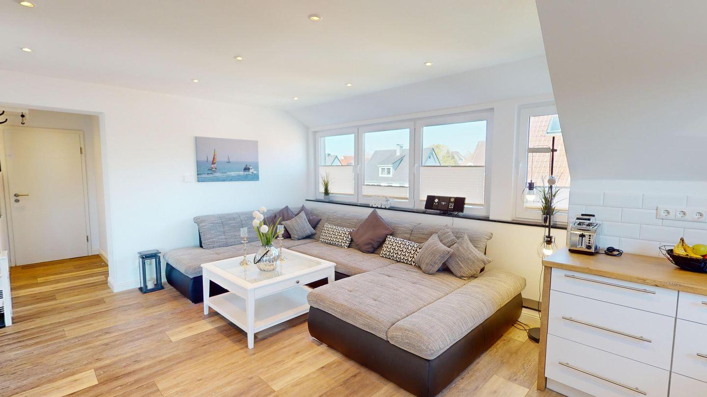 Die Luxus-Ferienwohnung "Muschel" in der Villa Klarsinni II liegt im 1. Stock des Hauses, geht über zwei Etagen und ist hochwertig möbliert. Sie liegt parallel zur Wohnung "Krabbe" und es bietet sich an, bei mehr als sechs Personen beide Wohnungen zu buchen.