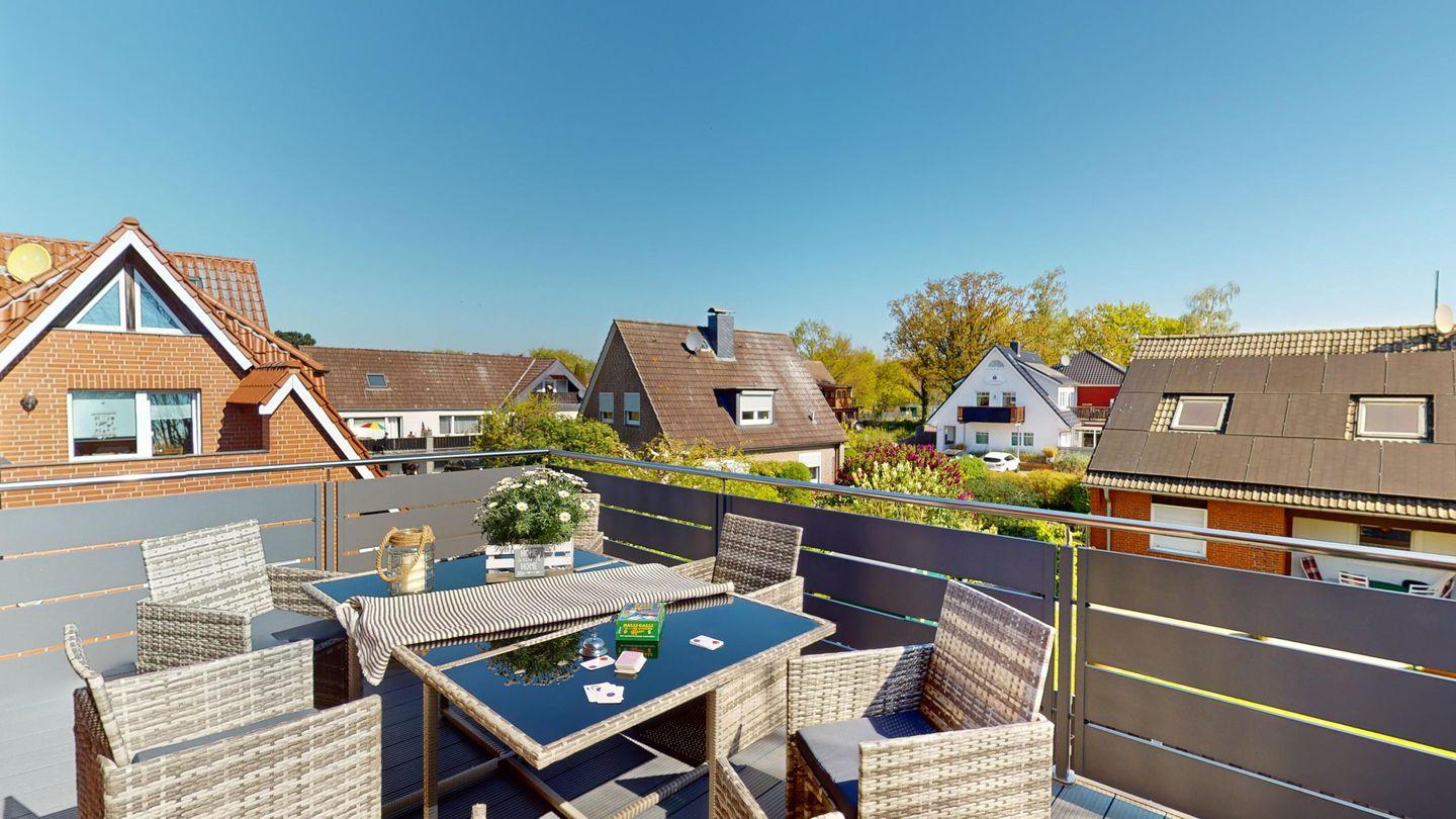 Eine herrliche Sonnenterrasse lädt zum Frühstücken oder zum Verweilen an lauen Sommerabenden ein. Gerne dürfen Sie auch den gemeinschaftlichen Grillplatz hinter dem Haus mitbenutzen!