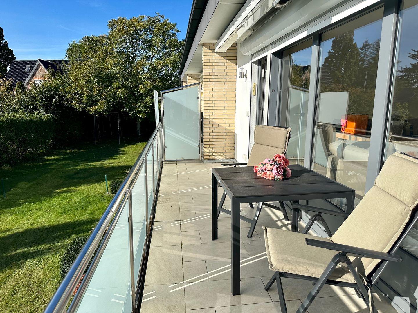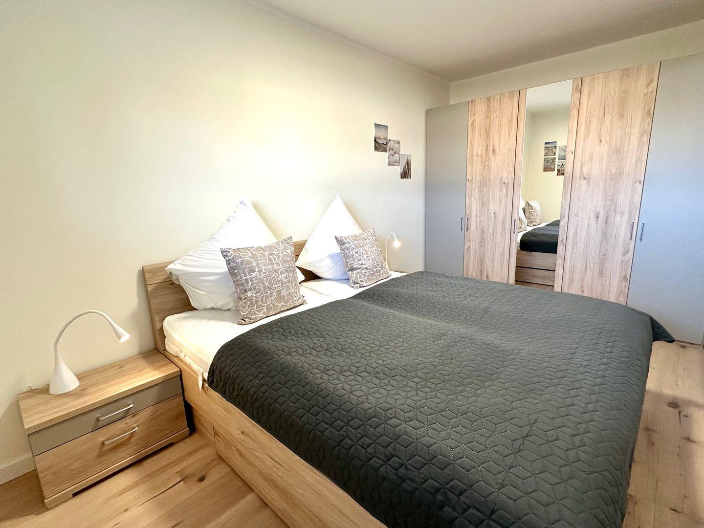 Die aufwendig renovierte und hochwertig ausgestattete Ferienwohnung bietet einen offenen Wohn- Essbereich mit Zugang zum möblierten Balkon. Hier können Sie bereits die ersten Sonnenstrahlen des Tages bei einer Tasse Kaffee und einem Blick ins Grüne genießen. Große Fenster lassen viel Tageslicht in die Räume und liebevoll ausgesuchte Dekorationselemente sorgen für eine maritime Wohnatmosphäre. Die separate, neue Einbauküche ist hochwertig und bestens ausgestattet. Das separate Schlafzimmer verfügt über ein Doppelbett, einen großen Kleiderschrank für Ihre Urlaubsgarderobe und ist ebenfalls -wie in der ganzen Wohnung - mit einem elektr. Rollladen ausgestattet. Hier können Sie nach einem ereignisreichen Urlaubstag perfekt zur Ruhe kommen und ausgeruht in den neuen Tag starten. Das neue, moderne Bad verfügt über eine bodentiefe Dusche und einen Handtuchwärmer. TV, Radio und WLAN stehen selbstverständlich zur Verfügung, ebenso ein fester PKW Stellplatz direkt vor dem Haus. Fahrräder können trocken im Keller abgestellt werden. Waschmaschine und Trockner stehen zur gemeinschaftlichen Nutzung gegen Gebühr zur Verfügung. Bei dem Objekt handelt es sich um ein Nichtraucher-Objekt. Haustiere sind nicht gestattet.
