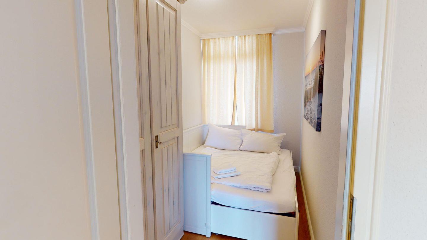 Bitte beachten Sie, dass es keine Außenrollläden gibt, sondern nur Gardinen als Sichtschutz, die nicht komplett abdunkeln.