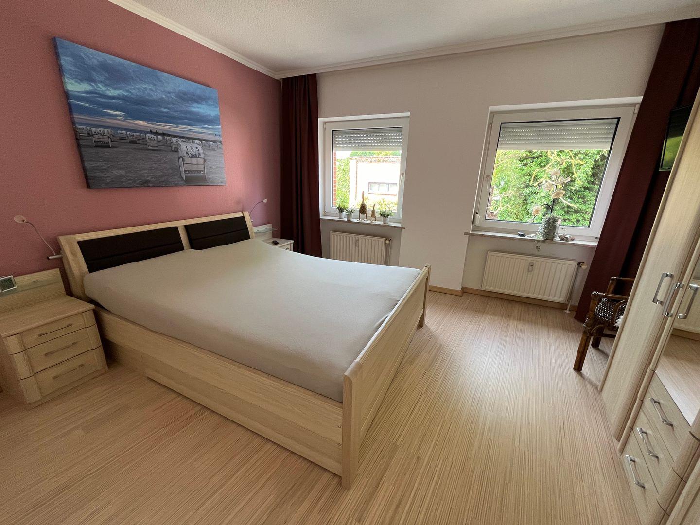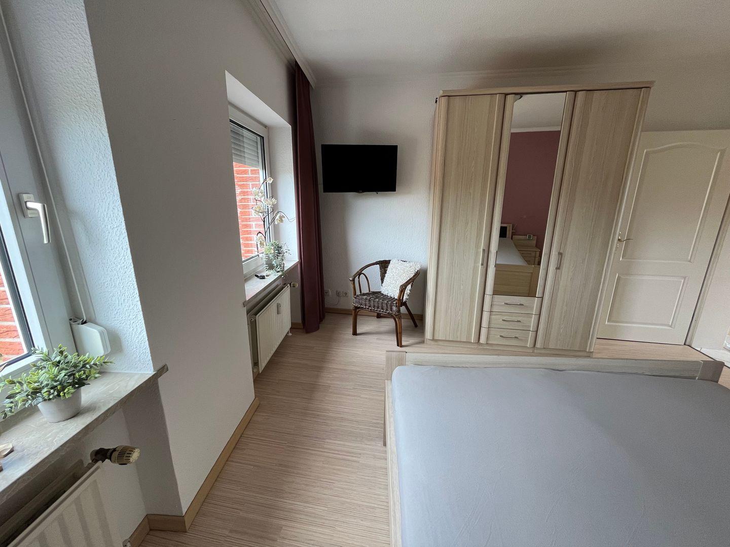 Es erwartet Sie zudem, ein separates Schlafzimmer mit Doppelbett (2x80cmx200cm), TV Gerät und Kleiderschrank. Die Fenster lassen sich mit Außenjalousien abdunkeln.