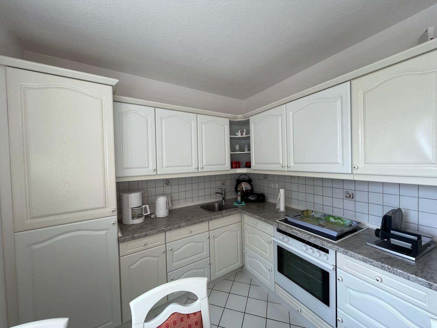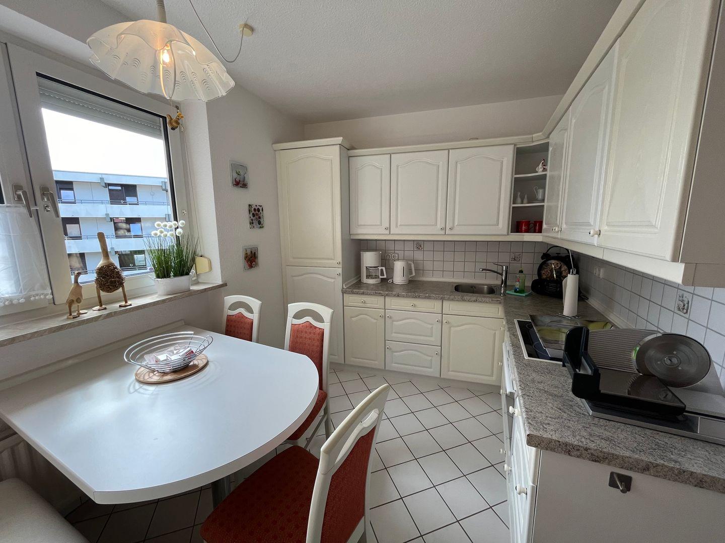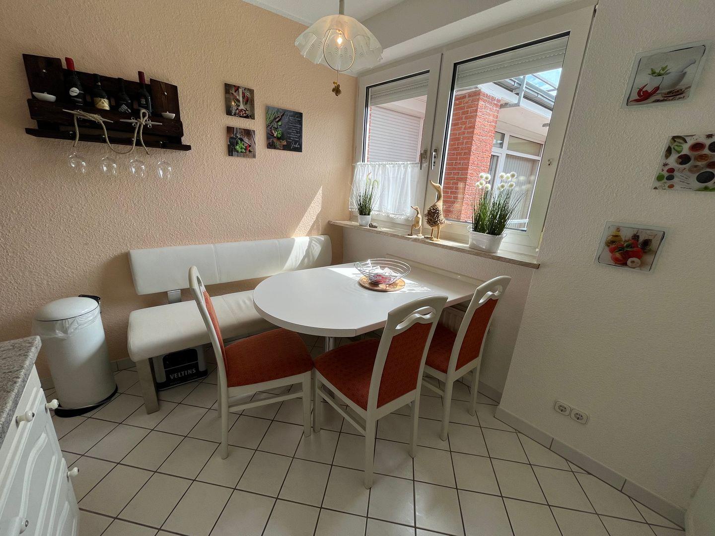Die große Wohnküche lädt auch bei Schietwetter zum gemütlichem beisammen sitzen ein und verfügt über sämtliche Elektrogeräte und Küchenutensilien, neben einer herkömmlichen Filterkaffeemaschine steht Ihnen auch eine Dolce Gusto Kapselmaschine zur Verfügung (keine Spülmaschine).