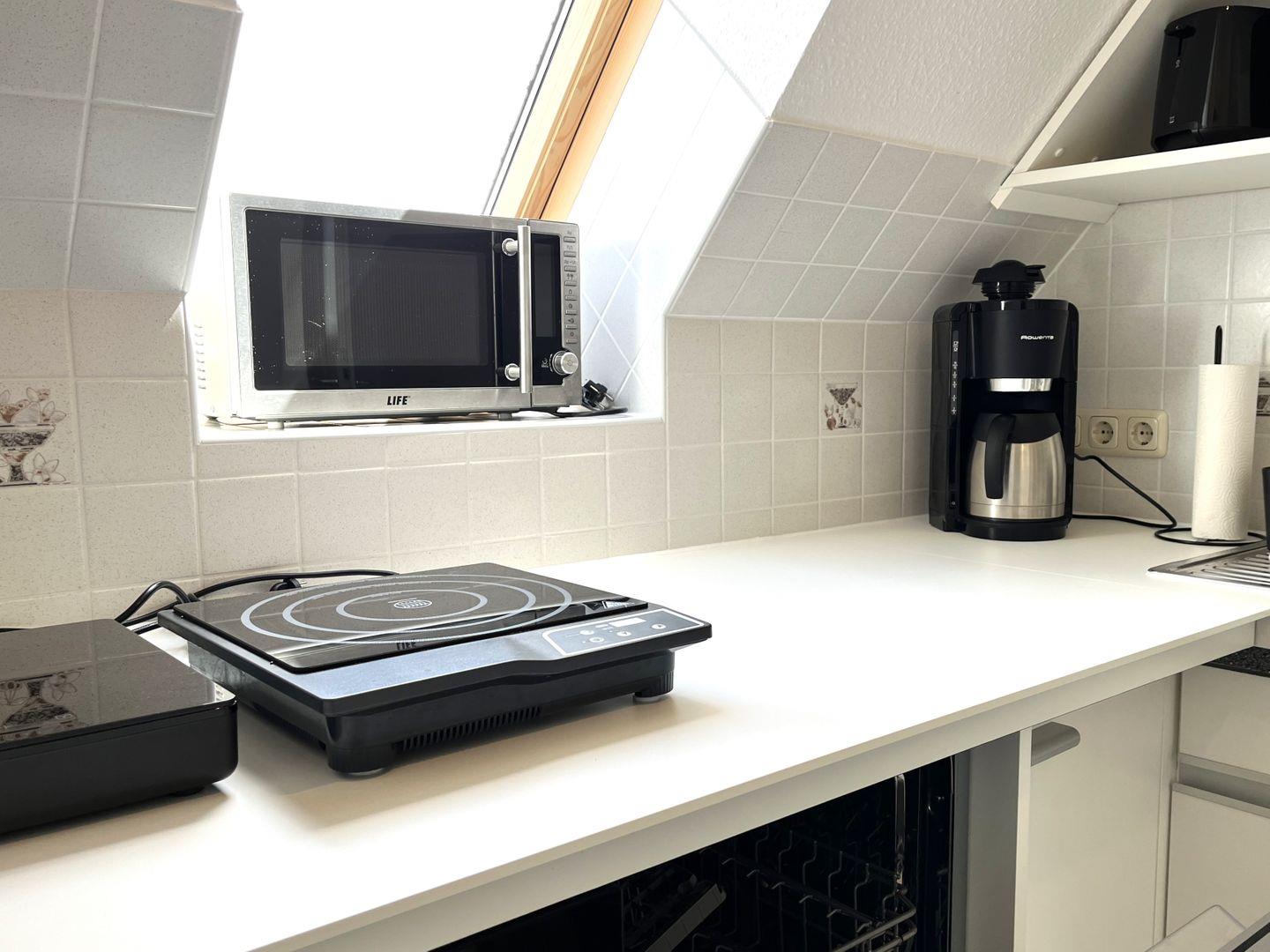 Genießen Sie sonnige Tage auf der Loggia mit ihrer Familie. Die kleine aber voll ausgestattete Küche lässt keine Wünsche offen und ermöglicht es Ihnen, köstliche Mahlzeiten zuzubereiten.