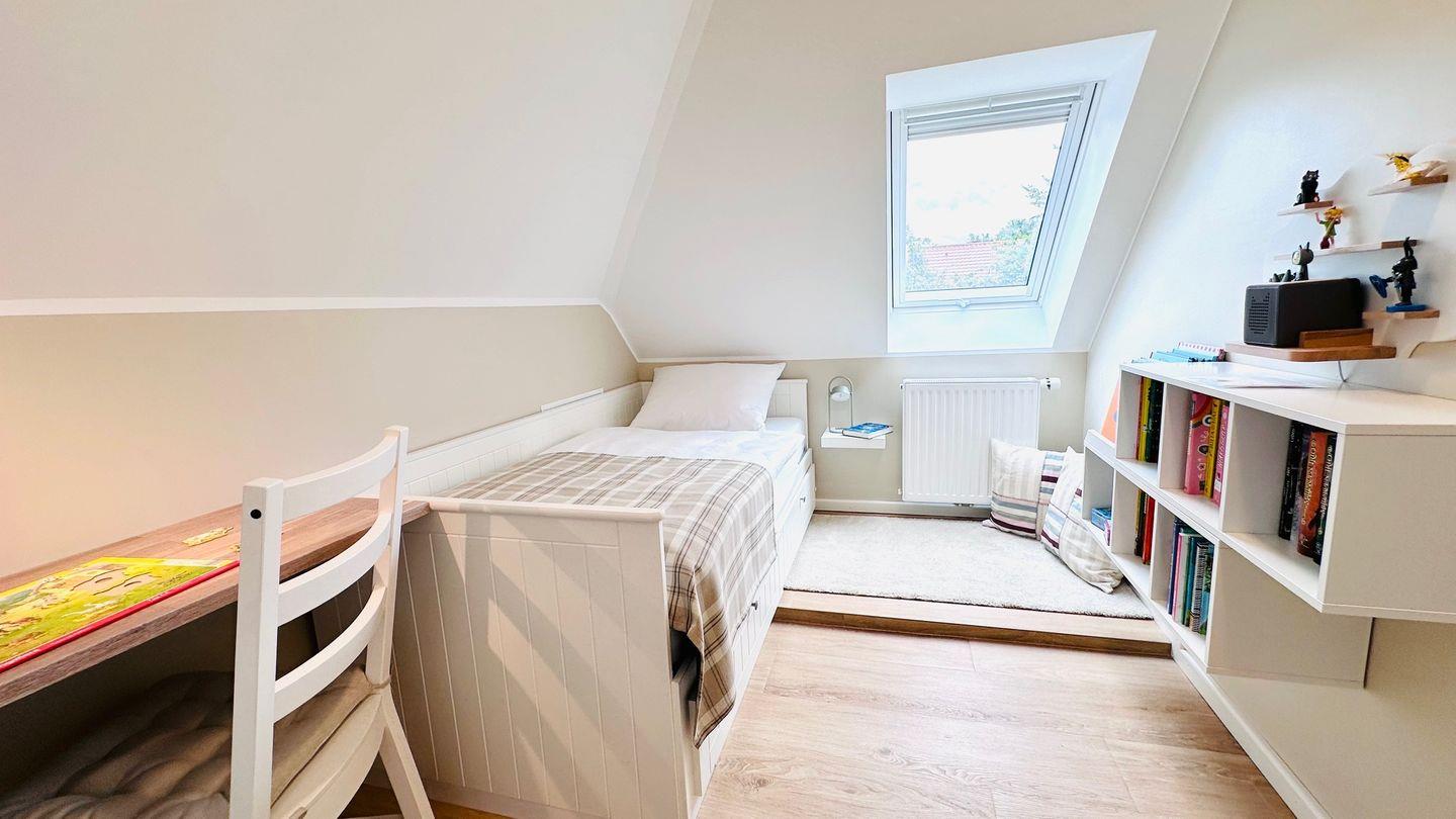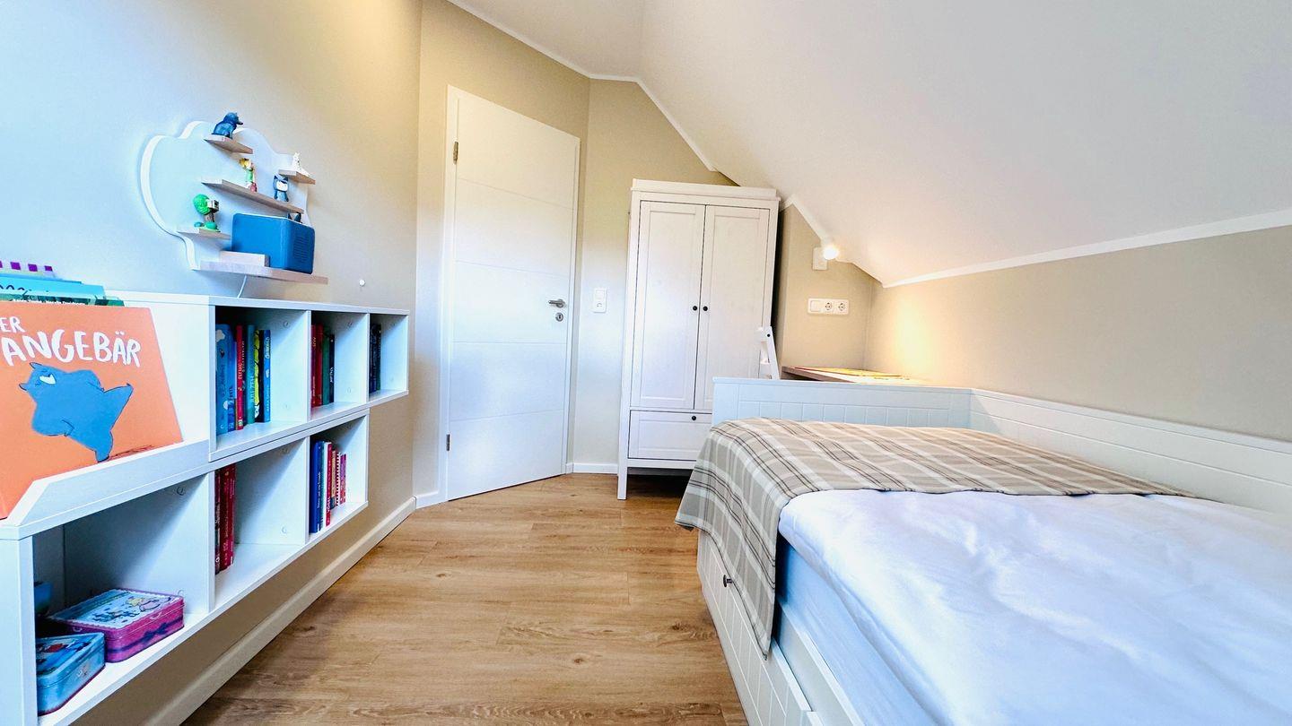 Die Wohnung im OG eines schönen Zweifamilienhauses liegt in einer ruhigen Sackgassen-Lage weniger als 650 m vom Strand entfernt. Das Zentrum, die Promenade und die Ostsee sind in wenigen Gehminuten zu erreichen. Das „komood“ bietet 2 gemütliche Schlafzimmer mit Verdunkelungsmöglichkeiten (Gardinen bzw. Velux-Rollo). Das Schlafzimmer verfügt über ein Doppel-Boxspringbett, Kleiderschrank, Safe, Ablagen und TV und das zweite Schlafzimmer ist mit einem Einzelbett (200 x 90 cm), Kleiderschrank, Bücherregal und Schreibtisch ausgestattet. Für Groß&Klein zum Wohlfühlen.