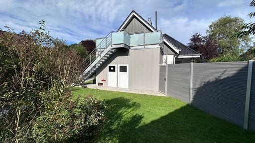 Die sonnige Dachgeschoss-Wohnung "komood" (plattdeutsch: gemütlich, behaglich) bietet auf 65m² ausreichend Platz für 3 Personen. Ein 15m² Südwest-Balkon (inkl. Grill, Liegen, Essbereich), eine windgeschützte Gartenterrasse mit Strandkorb sowie ein eigener Fahrradschuppen gehören dazu.
