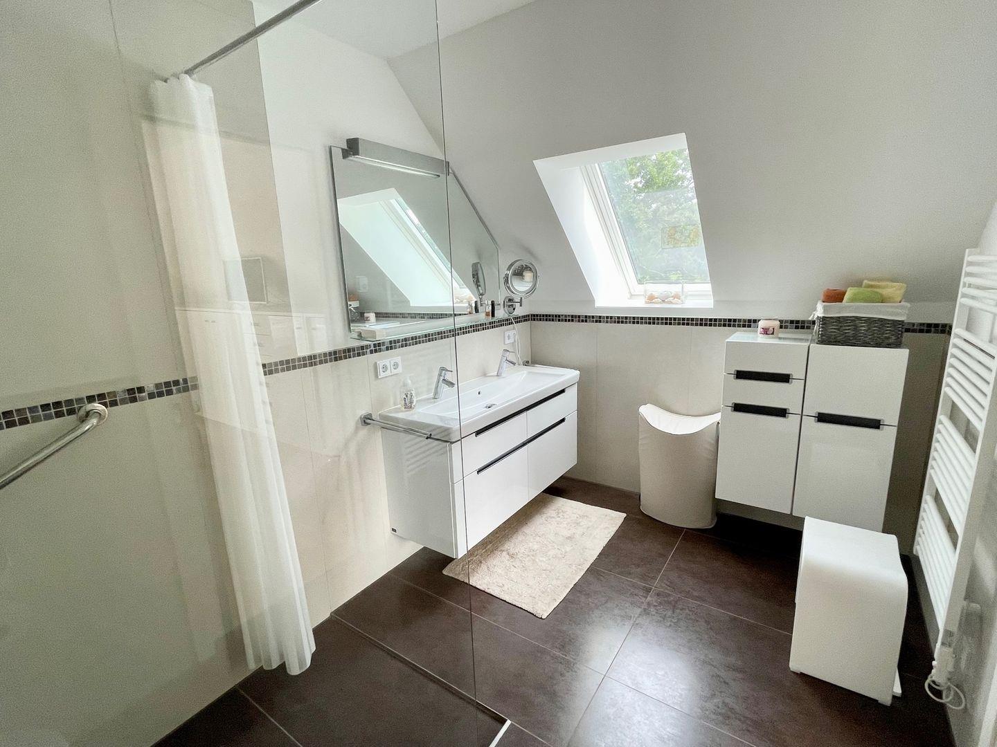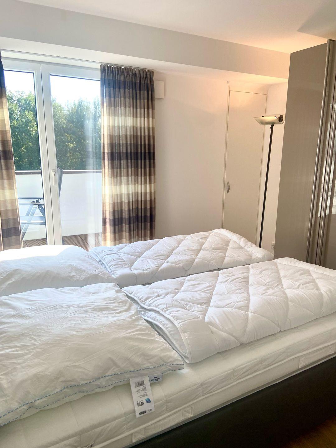 Die äußerst hochwertige Ausstattung und die stilvolle Einrichtung dieser Wohnung bietet zeitgemäßen Luxus auf 92 qm Wohnfläche. 2-4 Personen finden hier ein tolles Urlaubsdomizil. Mittelpunkt der Wohnung bildet der großzügige Wohnbereich, der mit einem Ecksofa und einem Relaxsessel mit Fußhocker ausgestattet ist und einen wunderschönem Blick auf den Golfplatz frei gibt. Der Balkon vom Wohn-/Esszimmerzimmer zeigt zur Westseite. Hier genießen Sie schon mittags die Sonne bis zum Sonnenuntergang am Abend. Der Essbereich mit der offenen, komplett ausgestatteten Komfortküche mit Dampfgarer und Mikrowelle bietet ausreichend Platz. Die Schlafzimmer verfügen über ein Doppelbett (2 x 80x200 cm) und ein Doppelbett (2 x 90x200 cm), einem großen Kleiderschrank mit ausreichend Stauraum für Ihre Urlaubsgarderobe und einem Balkon in Ostausrichtung - ausgestattet mit Gartenmöbeln- um mit der Morgensonne schon den ersten Kaffee dort zu genießen. Der nach Osten ausgerichtete Balkon ist von beiden Schlafzimmern aus begehbar. Sowohl vom West- wie auch vom Ostbalkon haben Sie einen spektakulären Blick in die Natur und auf den Golfplatz. Das Tageslicht-Bad ist hochwertig und modern und verfügt über eine ebenerdige bodentiefe Walk-In-Raindance-Dusche. Das Gäste-WC ist zusätzlich mit einer Waschmaschine und mit einem Trockner versehen. Kostenloser Internetzugang ist über WLAN gegeben. Ein wunderbares Highlight der Golfresidenz ist das große Schwimmbad (8x12 m) im Nachbarhaus, welches die Gäste der Anlage ganzjährig kostenfrei nutzen können. Entspannung ist ebenfalls in der Sauna gegeben (Münzbetrieb). Genießen Sie die Ruhe und Erholung, die Sie hier finden werden. Auf dem Grundstück sind zwei PKW Stellplätze für Sie reserviert. Ein Fahrstuhl ist selbstverständlich vorhanden um barrierefrei in diese tolle Dachgeschosswohnung zu gelangen. Fahrradständer sind vor dem Haus und mit dem Zweirad ist man bequem in 3 Minuten auch am Strand. Ein Bollerwagen steht Ihnen ebenfalls zur Verfügung. Ihren Hund dürfen Sie hier gerne mitbringen.