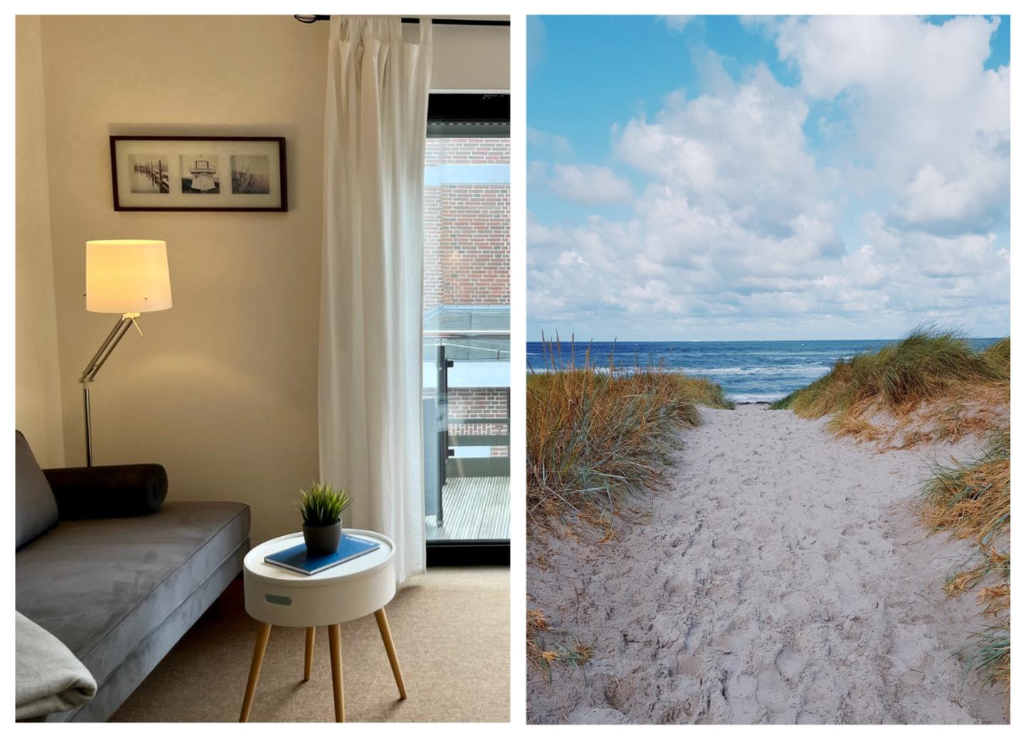 Komfortables 1-Zimmer-Apartment (25 m²) im 1. Stock für 2 Personen mit Sitzecke, Küchenzeile, Tresen, Ceranfeld, Bad mit Dusche und Balkon. Nur wenige Minute zum Strand. Optional kann ein Frühstück hinzugebucht werden.