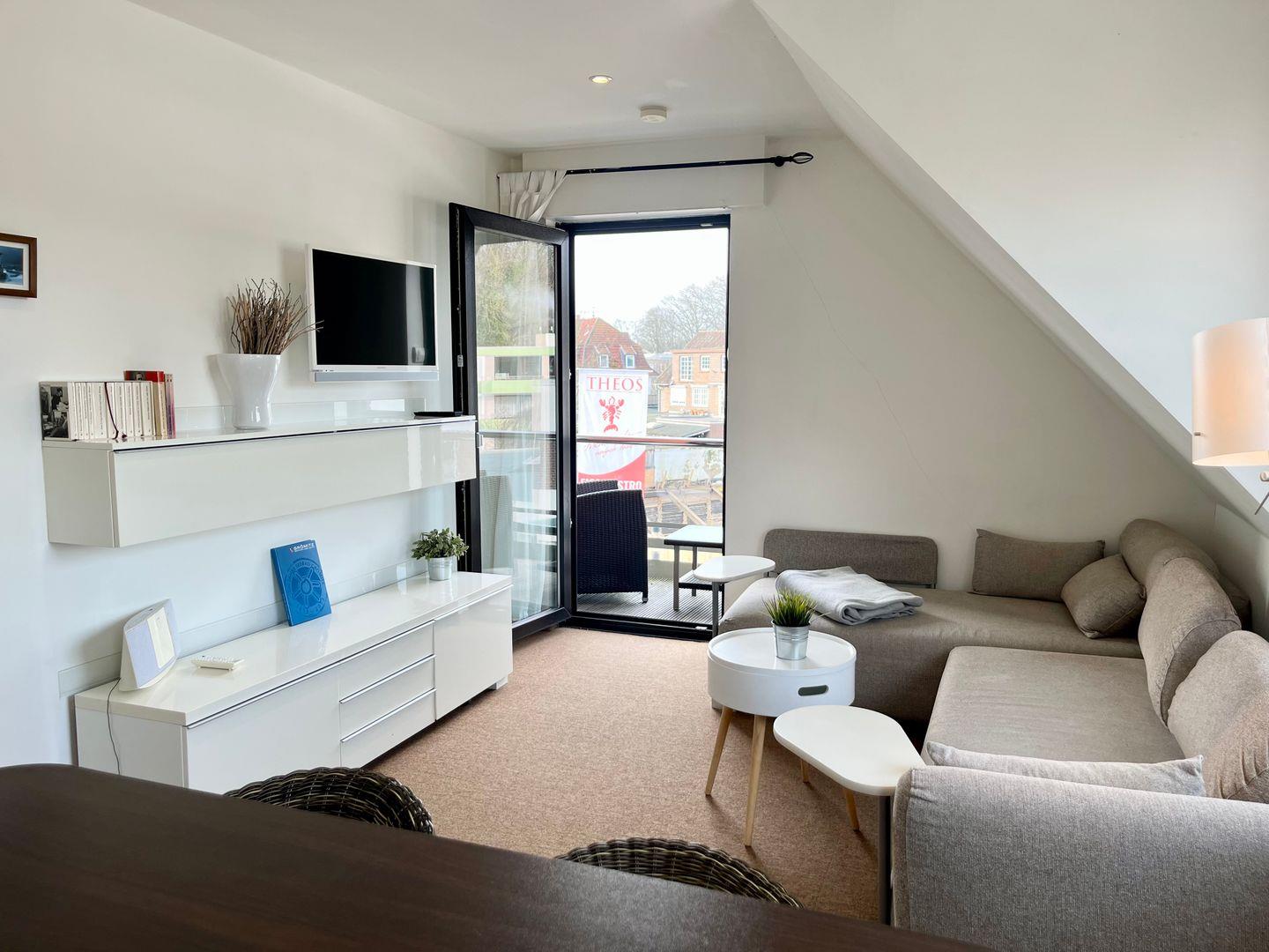 Diese charmante Ferienwohnung bietet auf 55 m² Platz für bis zu vier Personen und verfügt über ein gemütliches Schlafzimmer sowie ein offenes Wohnzimmer mit voll ausgestatteter Küche. Zur Entspannung stehen Ihnen eine gemeinschaftliche Sauna sowie Gartenmöbel auf dem Balkon zur Verfügung. Optional kann ein Frühstück hinzugebucht werden.