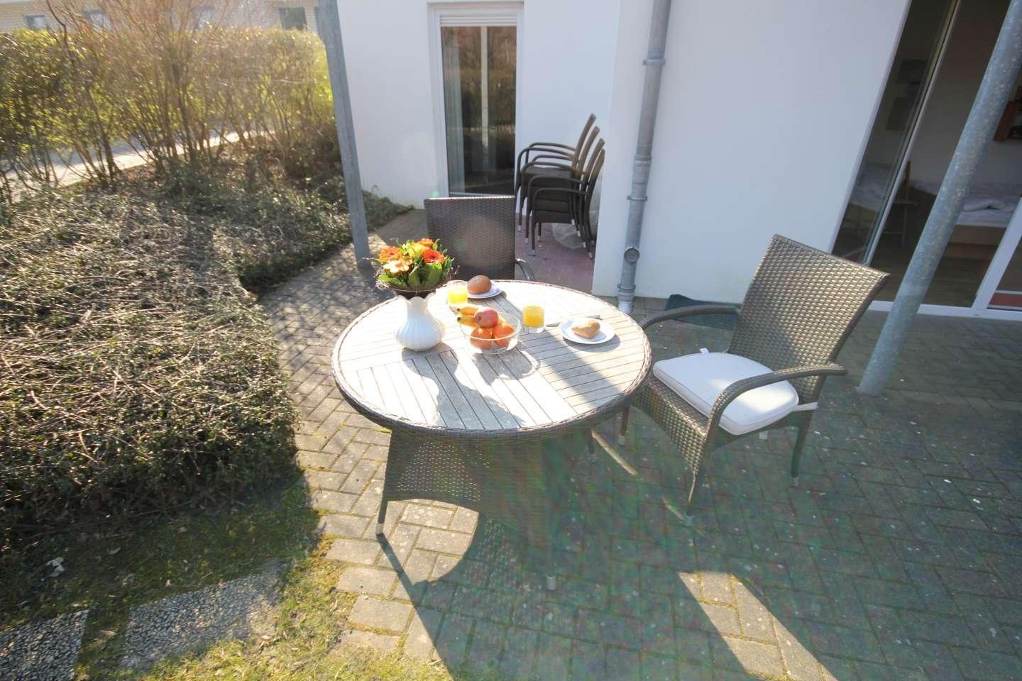 Helles, geräumiges Ferienapartment für max. 6 Personen mit Hund und möblierter Terrasse