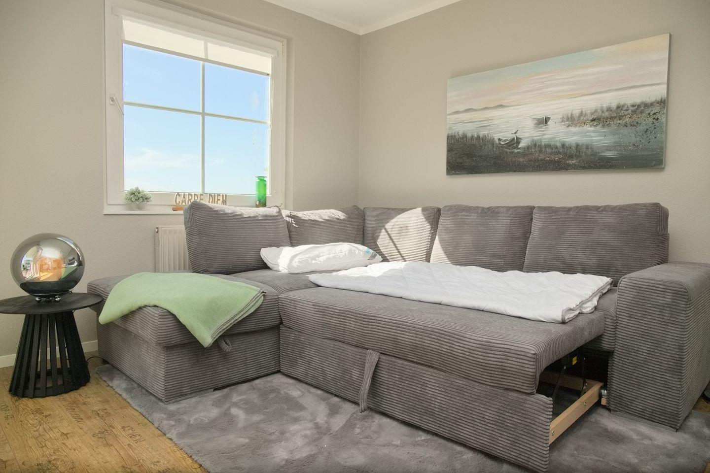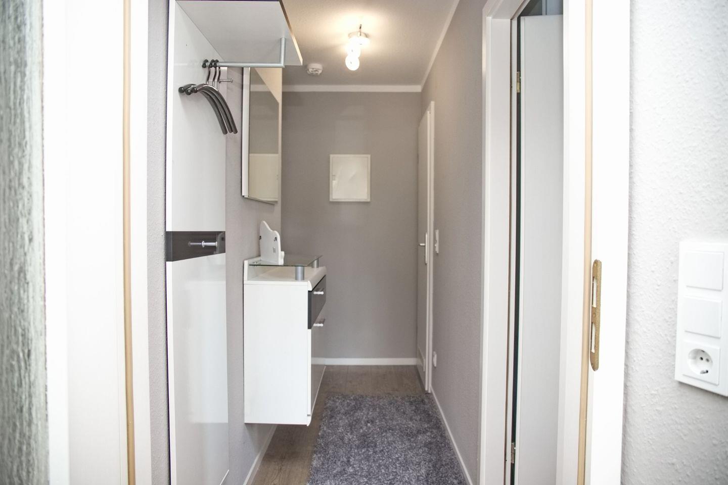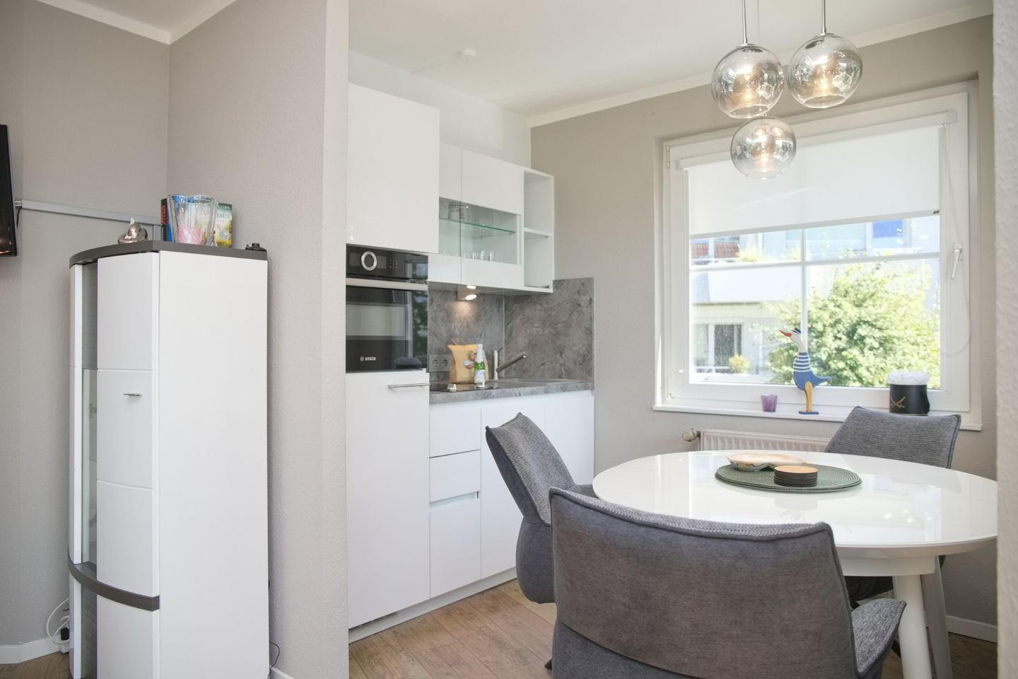 Diese gemütliche 2-Zimmer-Ferienwohnung in Grömitz liegt in der ersten Etage eines gepflegten Hauses, nur wenige Schritte von der Ostsee entfernt. Vom möblierten Balkon genießen Sie einen herrlichen Meerblick und können die frische Seeluft in vollen Zügen auskosten. Der lichtdurchflutete Wohnbereich ist mit einer bequemen Schlafcouch und einem Flachbild-TV ausgestattet und lädt nach einem Strandspaziergang zum Entspannen ein. Ein kleiner Essbereich mit drei Stühlen verbindet den Wohnraum mit der offenen Einbauküche, die über ein modernes Cerankochfeld, eine Mikrowelle mit Backfunktion, einen Kühlschrank mit Gefrierfach, einen Geschirrspüler sowie Toaster, Kaffeemaschine und Wasserkocher verfügt – ideal für alle, die sich im Urlaub selbst verpflegen möchten. Im separaten Schlafzimmer sorgt ein komfortables, elektrisch verstellbares Boxspringbett (2x90x200 cm mit einzel Topper) für erholsame Nächte. Ein geräumiger Kleiderschrank und ein weiterer Flachbild-TV bieten zusätzlichen Komfort. Das moderne Badezimmer ist mit Dusche, WC, Waschtisch und Spiegelschrank ausgestattet.