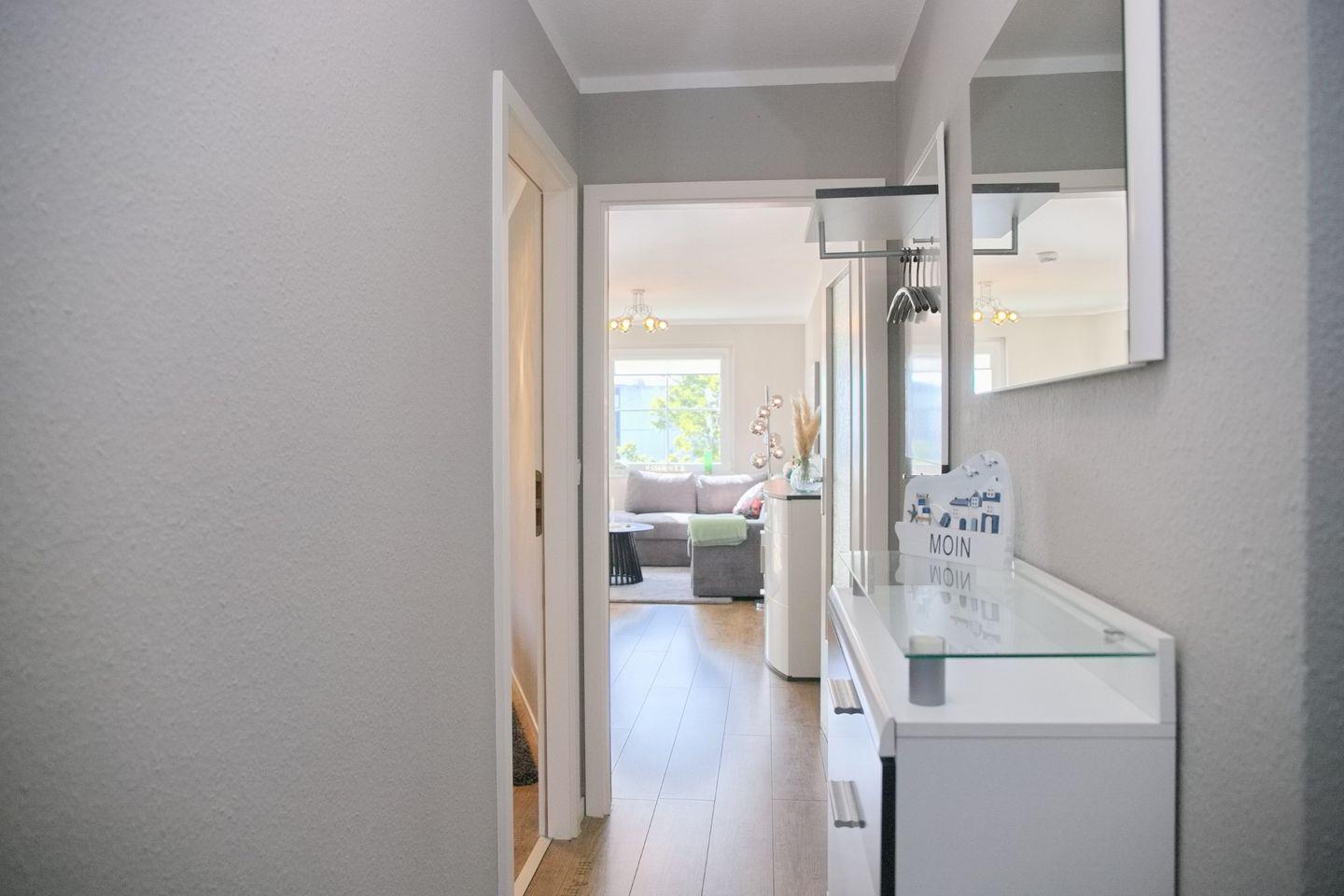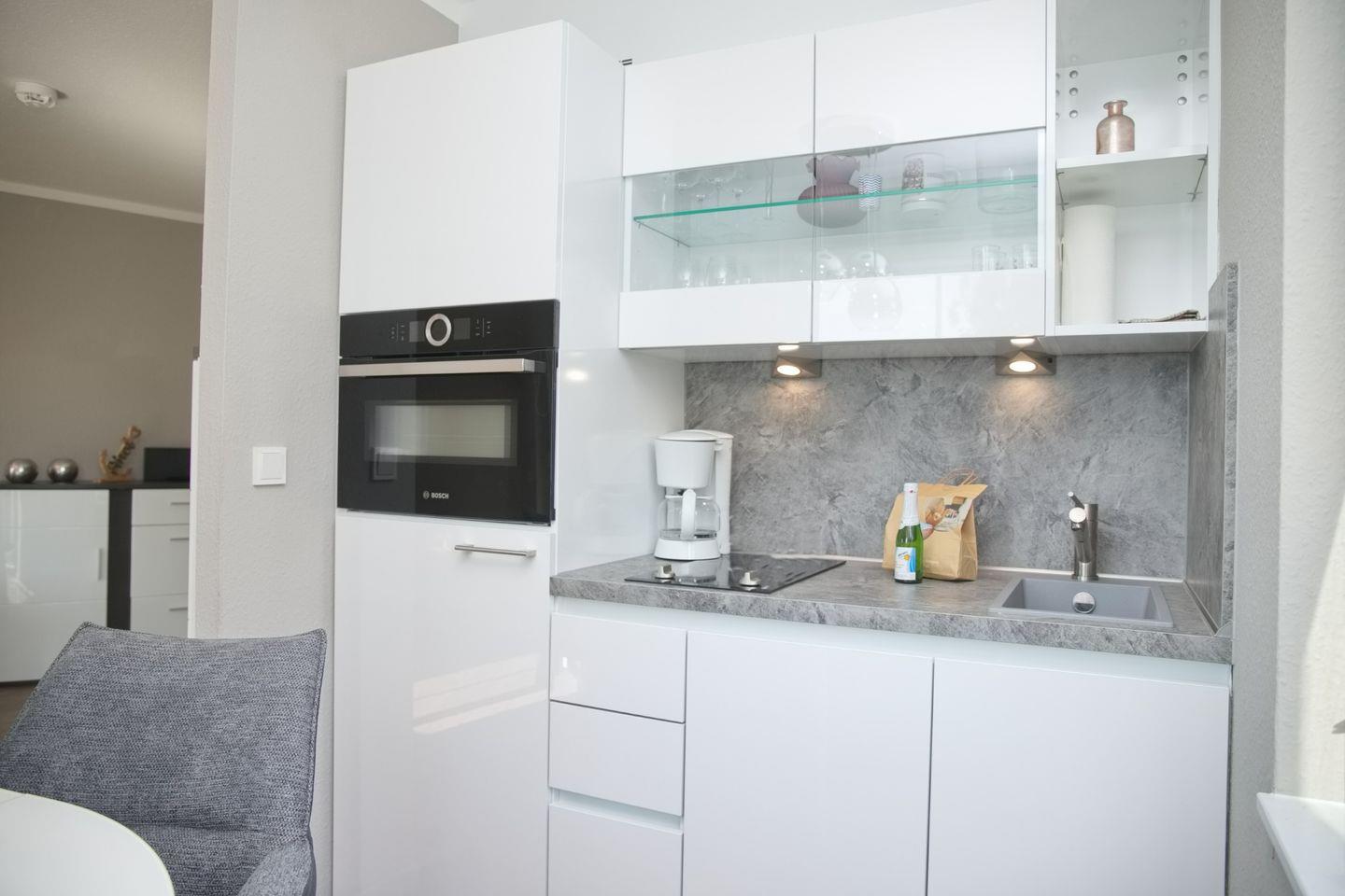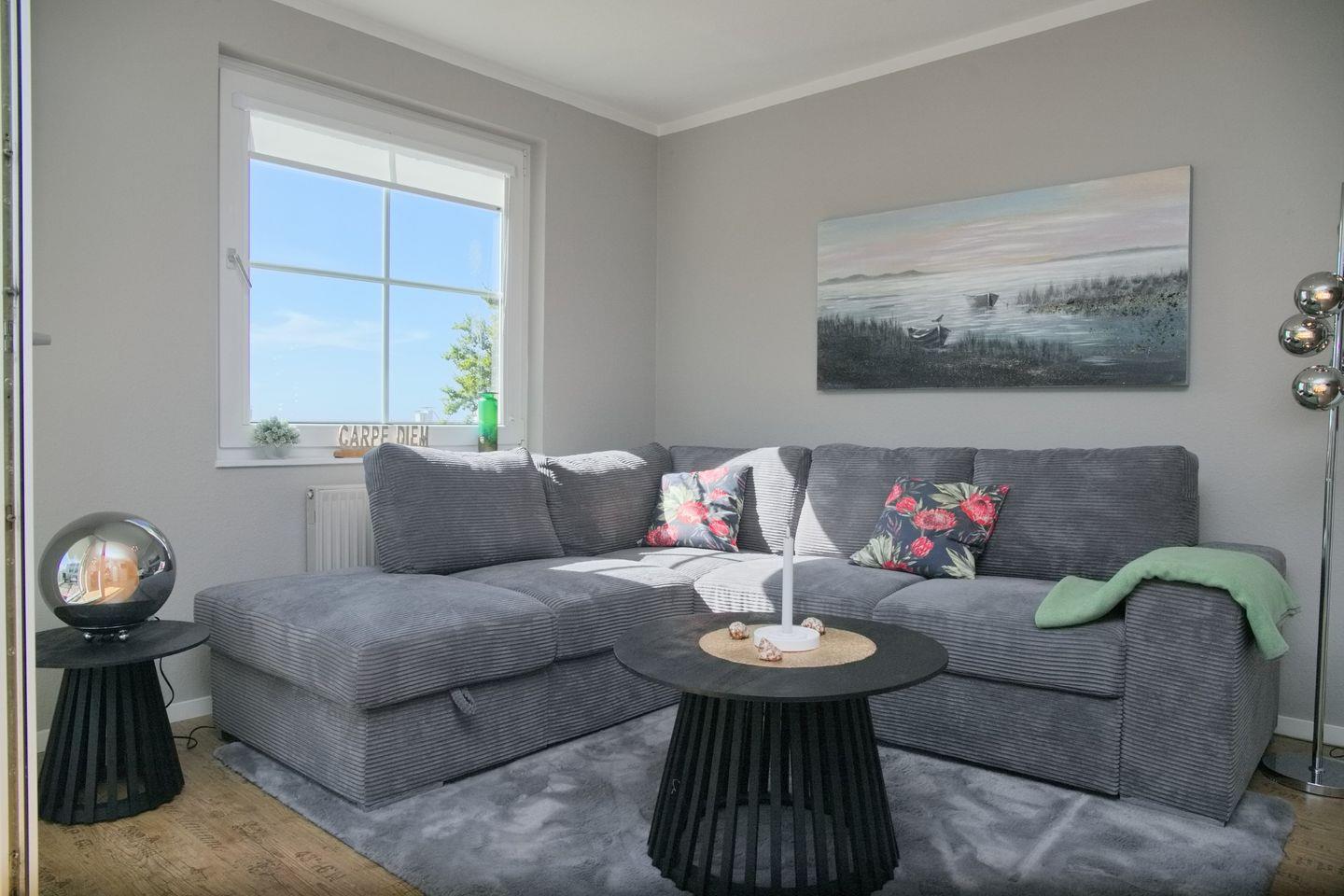 Diese gemütliche 2-Zimmer-Ferienwohnung in Grömitz liegt in der ersten Etage eines gepflegten Hauses, nur wenige Schritte von der Ostsee entfernt. Vom möblierten Balkon genießen Sie einen herrlichen Meerblick und können die frische Seeluft in vollen Zügen auskosten. Der lichtdurchflutete Wohnbereich ist mit einer bequemen Schlafcouch und einem Flachbild-TV ausgestattet und lädt nach einem Strandspaziergang zum Entspannen ein. Ein kleiner Essbereich mit drei Stühlen verbindet den Wohnraum mit der offenen Einbauküche, die über ein modernes Cerankochfeld, eine Mikrowelle mit Backfunktion, einen Kühlschrank mit Gefrierfach, einen Geschirrspüler sowie Toaster, Kaffeemaschine und Wasserkocher verfügt – ideal für alle, die sich im Urlaub selbst verpflegen möchten. Im separaten Schlafzimmer sorgt ein komfortables, elektrisch verstellbares Boxspringbett (2x90x200 cm mit einzel Topper) für erholsame Nächte. Ein geräumiger Kleiderschrank und ein weiterer Flachbild-TV bieten zusätzlichen Komfort. Das moderne Badezimmer ist mit Dusche, WC, Waschtisch und Spiegelschrank ausgestattet.