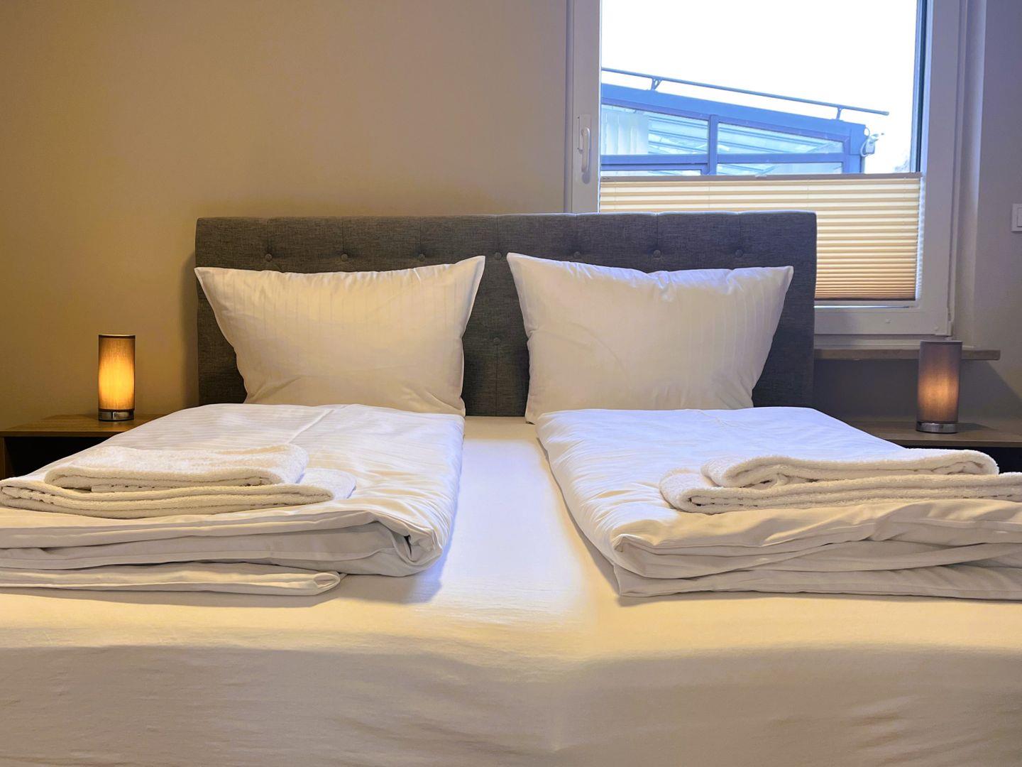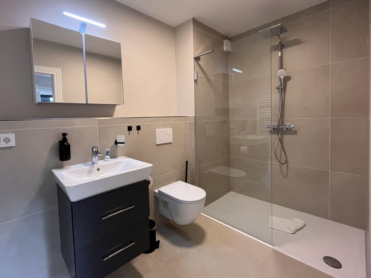 Die Unterkunft verfügt über ein separates Schlafzimmer mit Betten, die ein offenes Fußende besitzen, wodurch Komfort auch für größere Gäste gewährleistet wird. Im modernen Badezimmer stehen Ihnen eine Dusche mit Badewanne, ein Waschbecken, ein Spiegel, ein WC sowie Handtücher und ein Haartrockner zur Verfügung. Waschbecken, warmes Wasser und ein Abfalleimer ergänzen die komfortable Ausstattung.
