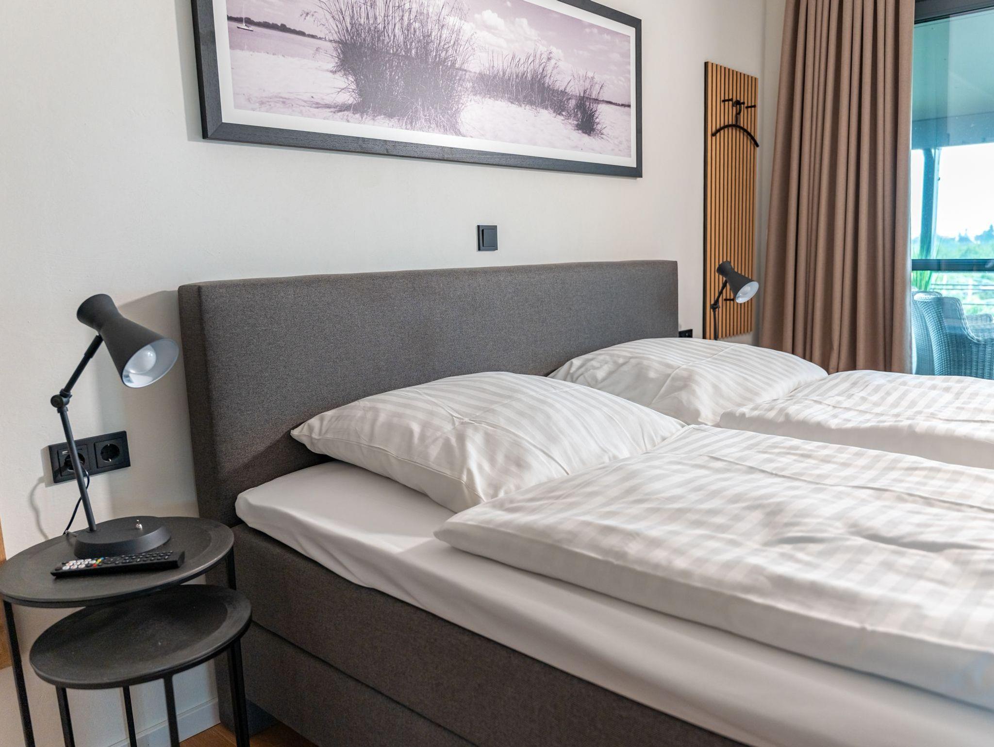 Die modernen, lichtdurchfluteten Wohnungen der Kategorie Deck 3_2 sind für max. 2 Personen und befinden sich im Obergeschoß der Anlage. Alle Wohnungen der Kategorie haben einen schönen Balkon mit Deichblick.