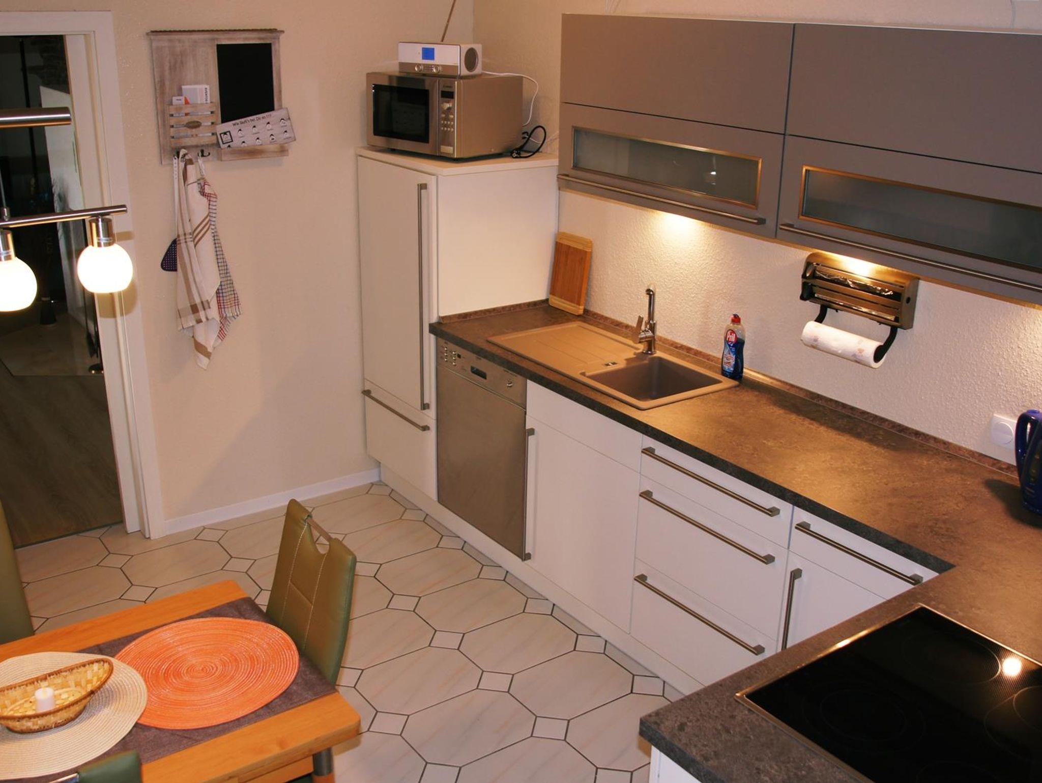 -sonstige Ausstattung: Fön, Mikrowelle, Kaffemaschine, Wasserkocher, Küchentücher, Geschirrspüler, Kühlschrank mit Tiefkühlfach, Bügelbrett mit Bügeleisen, Radiowecker, Waschmaschine, Trockner u.v.m.