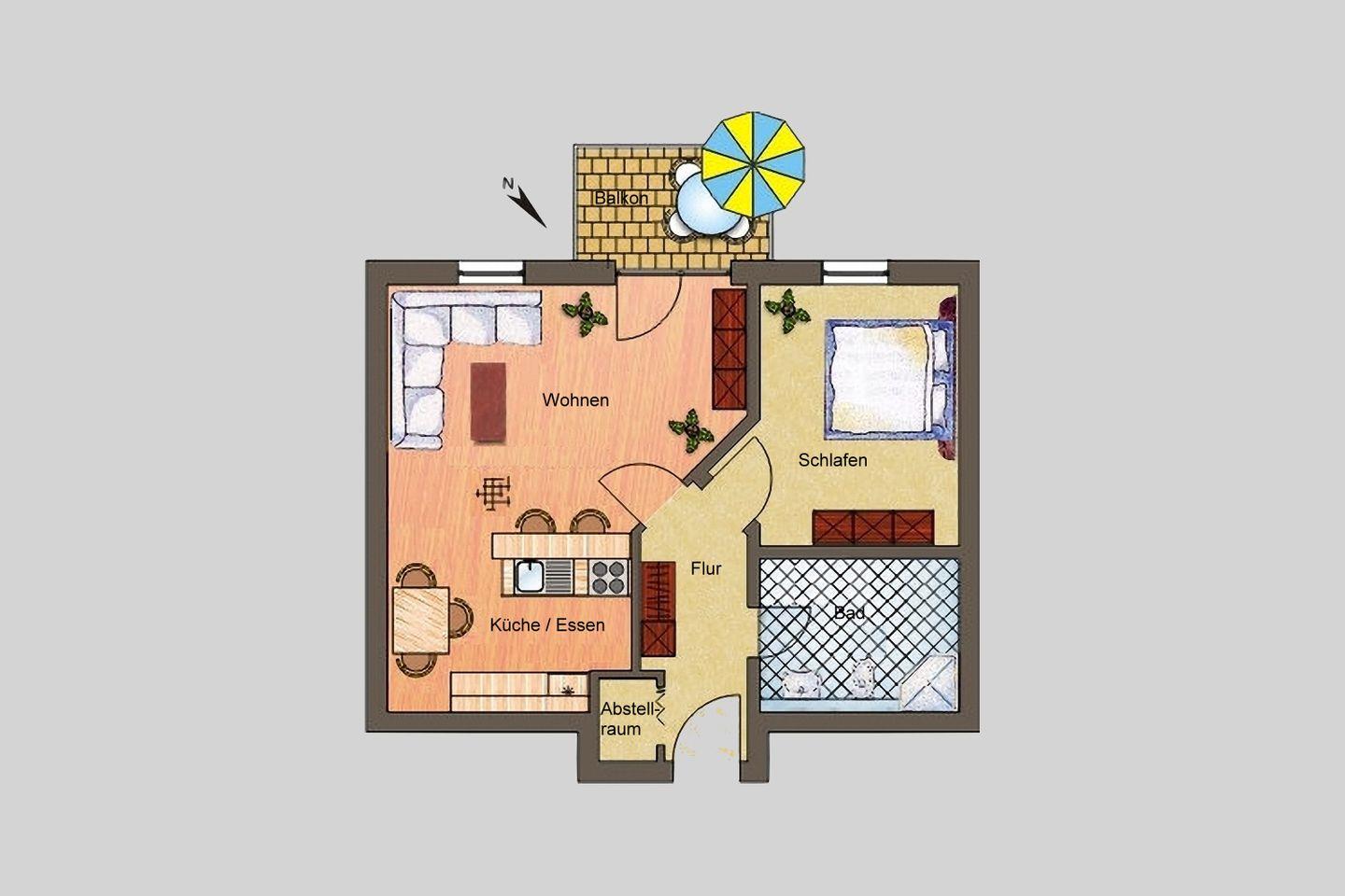 2-Zimmer-Ferienappartement im 1.Obergeschoss, ca.57 m² groß