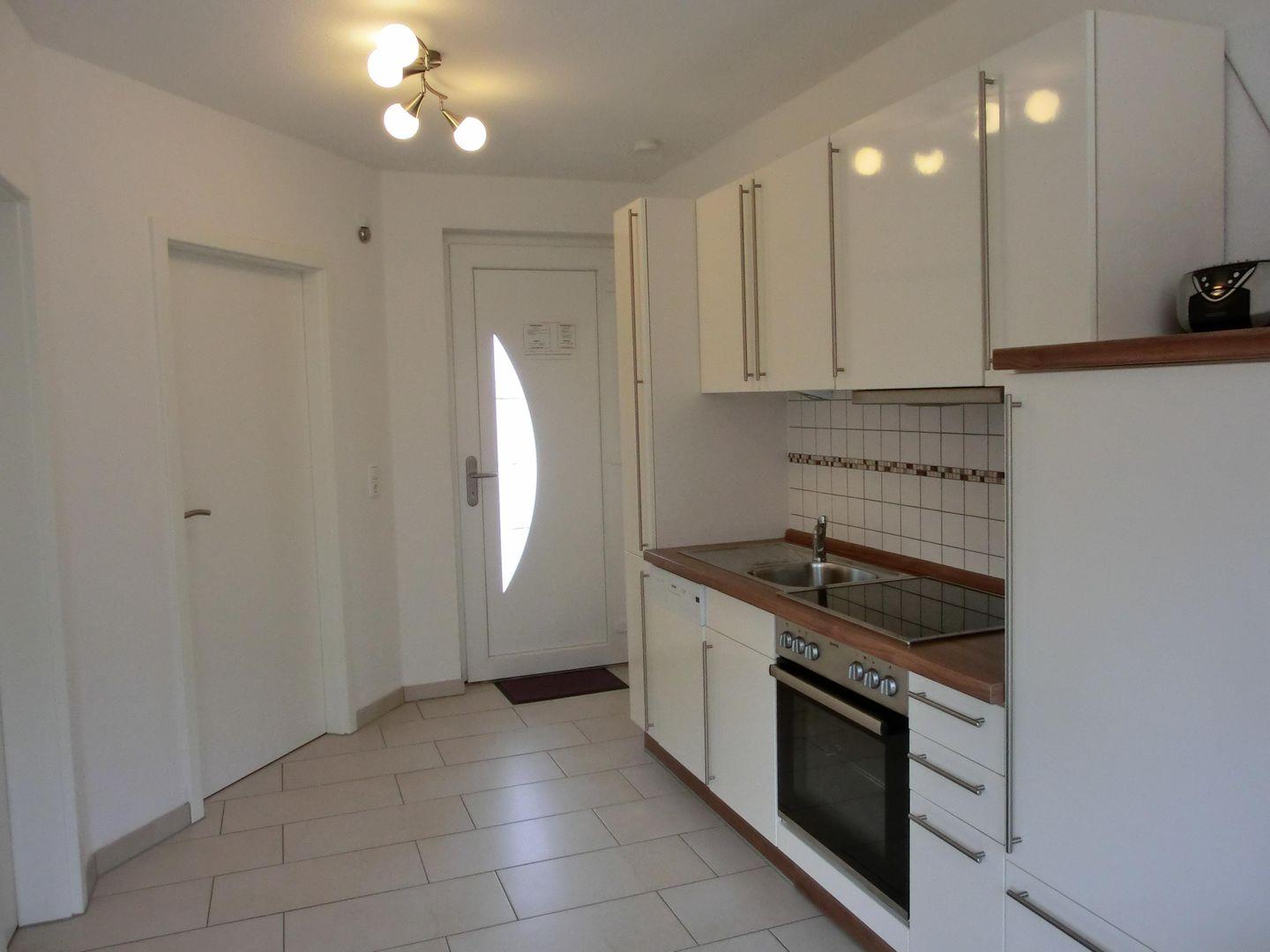 - eine offene Küche inkl. Herd mit Backofen, Geschirrspülmaschine, Kühlschrank mit Gefrierteil, Kaffeemaschine, Toaster und Wasserkocher