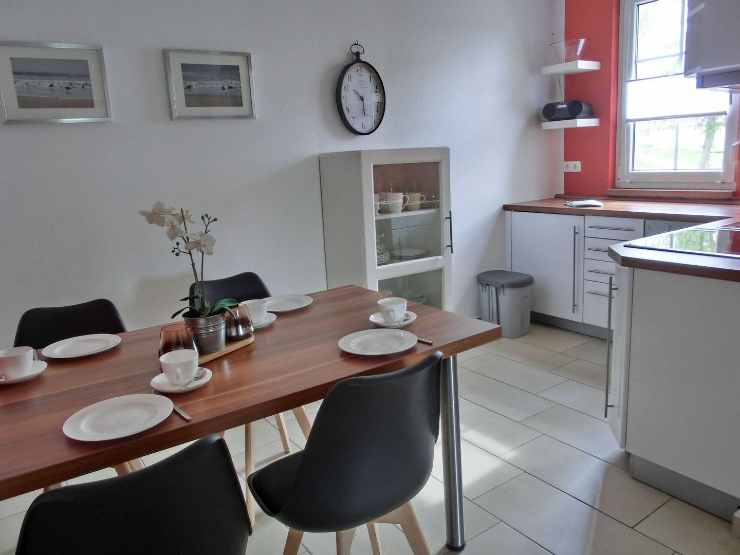 - separate Küche inkl. Herd mit Backofen, Mikrowelle, Kühlschrank mit Gefrierfach, Geschirrspülmaschine, Wasserkocher, Toaster, Kaffeemaschine, Geschirr, Besteck und Gläser sind ausreichend vorhanden