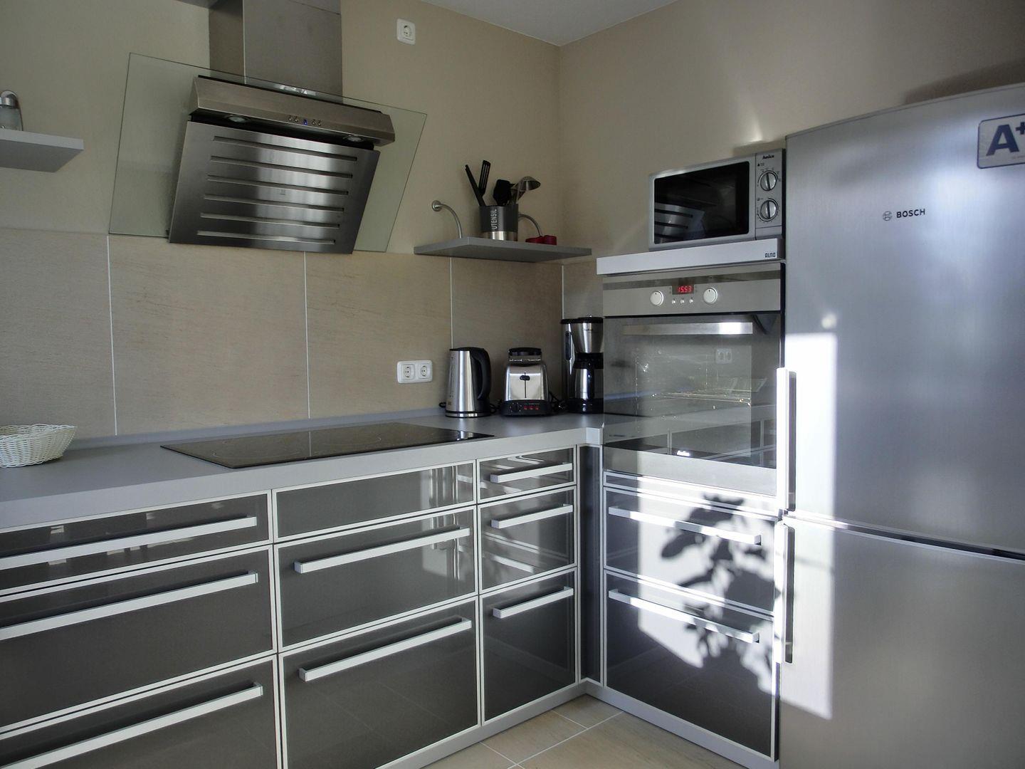 - separate Küche inkl. Geschirrspülmaschine, Herd mit Backofen, Mikrowelle, Kühlschrank und Gefrierschrank, Kaffeemaschine, Toaster, Wasserkocher, Besteck und Gläser sind ausreichend vorhanden
