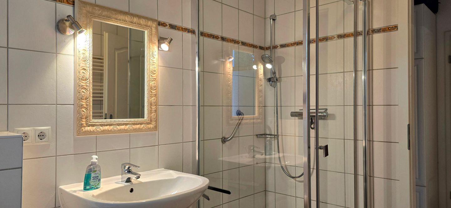 - Tageslichtbadezimmer mit Dusche, WC und genügend Ablagefläche