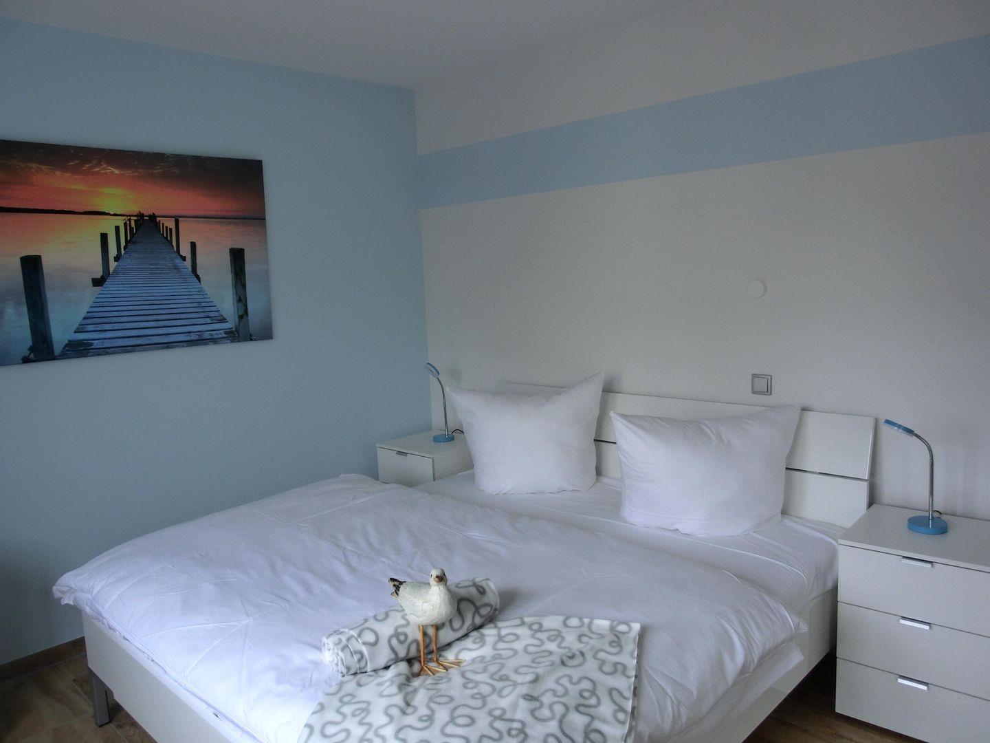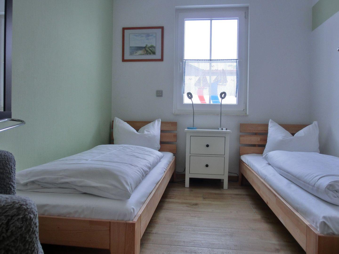 - 1 Schlafzimmer mit 2 Einzelbetten (je 80 cm x 200 cm)
