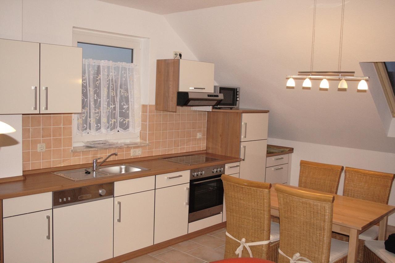 - offene, gut ausgestattete Küche inkl. Geschirrspülmaschine, Herd mit Backofen, Kühlschrank mit kleinem Gefrierteil, Kaffeemaschine, Wasserkocher, Toaster, Geschirr, Besteck und Gläser ausreichend vorhanden