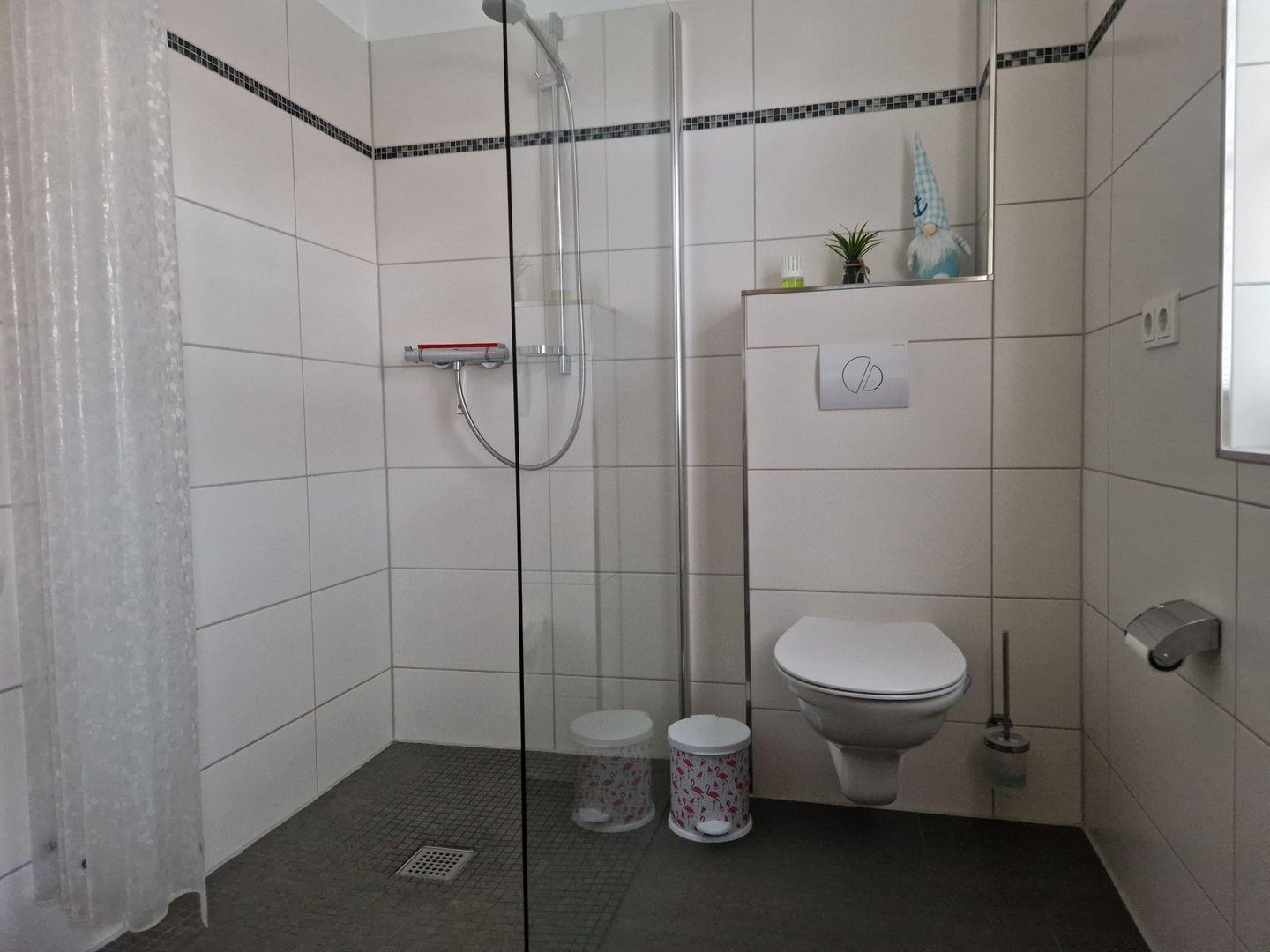 - Das große Badezimmer im Obergeschoss ist mit Dusche und Badewanne ausgestattet.