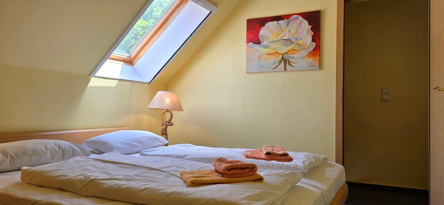 - separates Schlafzimmer mit Doppelbett im Dachgeschoss