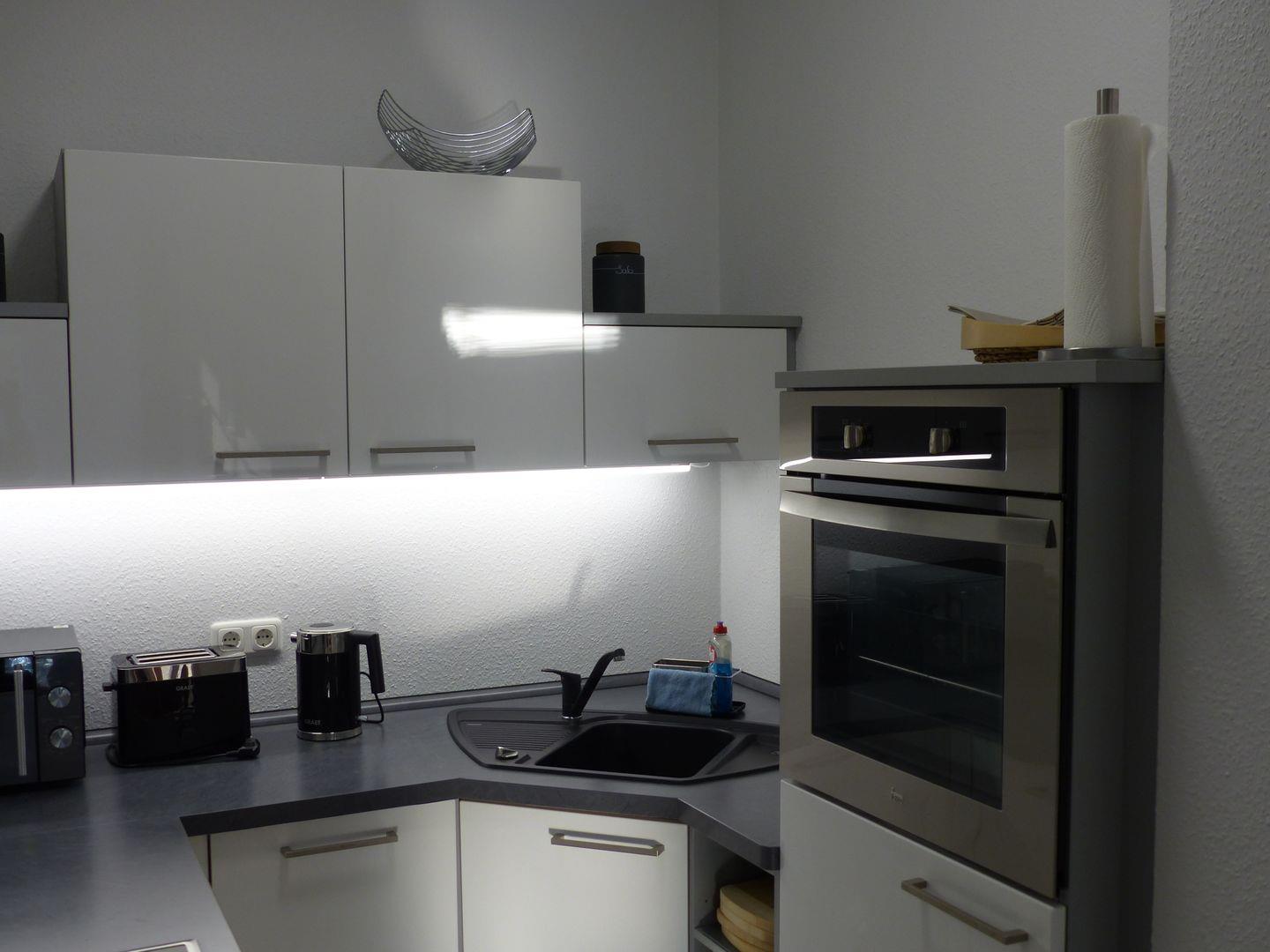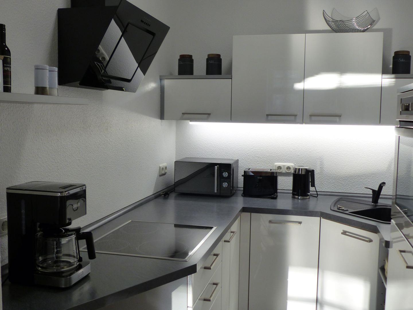 Das großzügige Wohnzimmer mit Essbereich ist ausgestattet mit modernem Flachbildfernseher (55 Zoll), DVD-Player, Stereoanlage und einer bequemen Couch / Sesselkombination. Die halboffene Küche ist mit allen technischen Geräten, wie z.B. Geschirrspüler, Ceranfeld, Backofen, Mikrowelle, Kaffeemaschine, Toaster versehen. Das moderne Duschbad verfügt über eine Waschmaschine.