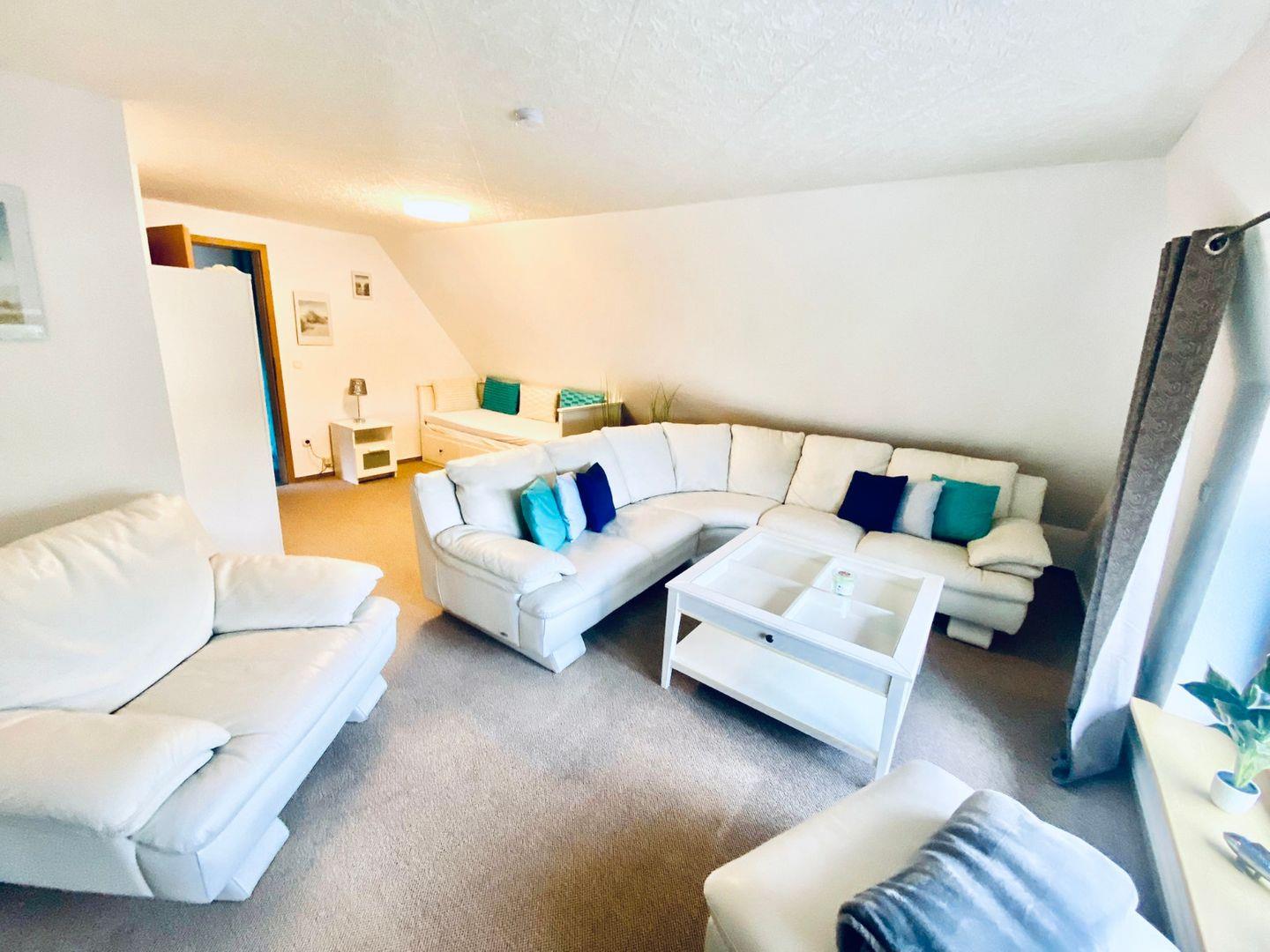 Das KAPITÄNS HUS ist ideal für Familien, Paare oder Gruppen von Freunden und bietet Platz für bis zu 18 Gäste in insgesamt 7 Schlafzimmern. Jedes Schlafzimmer ist komfortabel eingerichtet und sorgt für einen erholsamen Schlaf. Das Herzstück des Hauses bildet der großzügige Wohnbereich, in dem der Kamin für eine warme, gemütliche Atmosphäre sorgt. Hier können Sie entspannte Abende mit Ihrer Familie oder Ihren Freunden verbringen, während Sie gemeinsam in den großen Sofas relaxen oder einen Film auf einem der vier Fernseher genießen.