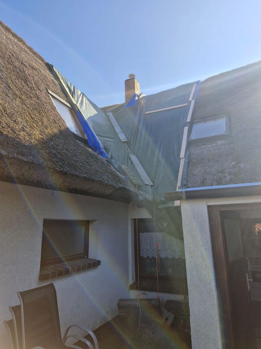 Achtung: zur Zeit ist das Reetdach teilweise mit einer Dachplane abgedeckt.