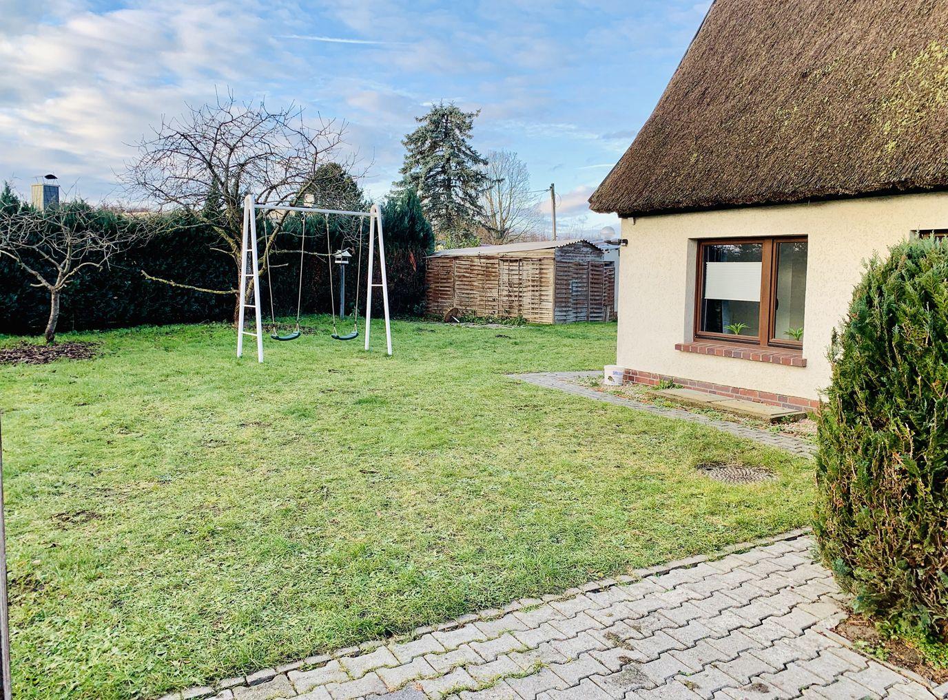 Die großzügige Terrasse, die an den wunderschönen Garten grenzt, lädt zu gemütlichen Grillabenden nach einem Tag am Strand ein.