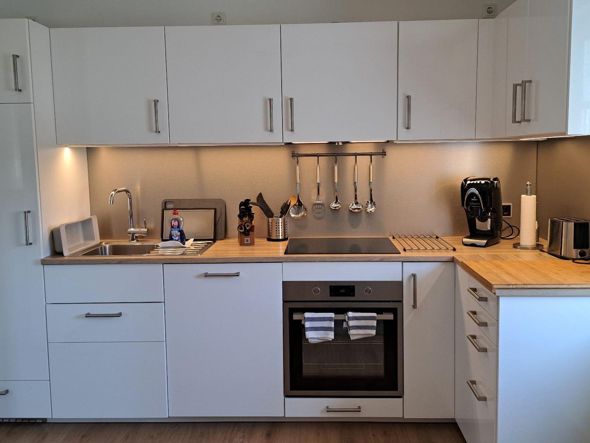 Wasserkocher, Kapsel-Kaffeemaschine, Toaster, Kühlschrank mit Gefrierfach, Backofen mit