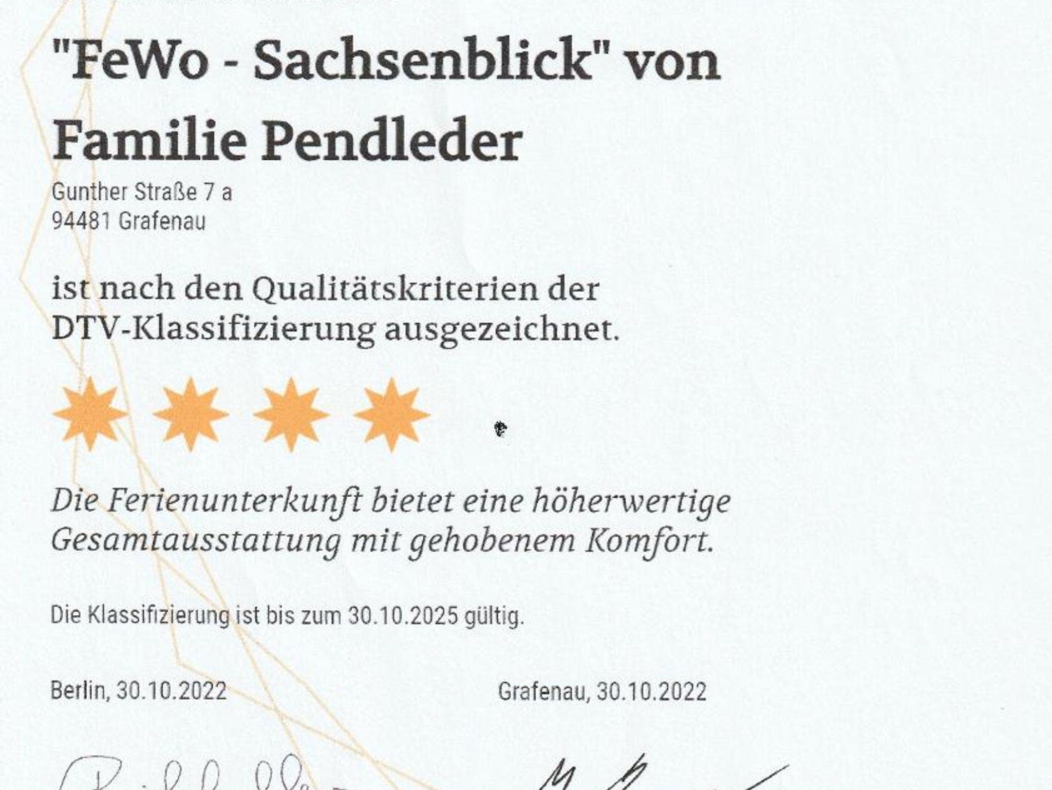 Wir können Ihnen in Grafenau zwei Wohlfühl-Ferienwohnungen in einem Haus, in sehr ruhiger Lage, ca. fünf Gehminuten vom Stadtzentrum entfernt mit herrlichen Blick zum Hohen Sachsen anbieten. Sie sind mit viel Liebe zum Detail eingerichtet und ausgestattet. Die FEWO 1 mit einer Fläche von ca. 74m² befindet sich im OG und hat einen Gartenanteil. Die FEWO 2 ist im EG mit ca. 85m² und großer Terrasse. Beide Wohnungen bieten Platz von 1 bis 4 Personen. Ein Parkplatz ist für Sie kostenlos vor dem Haus reserviert.