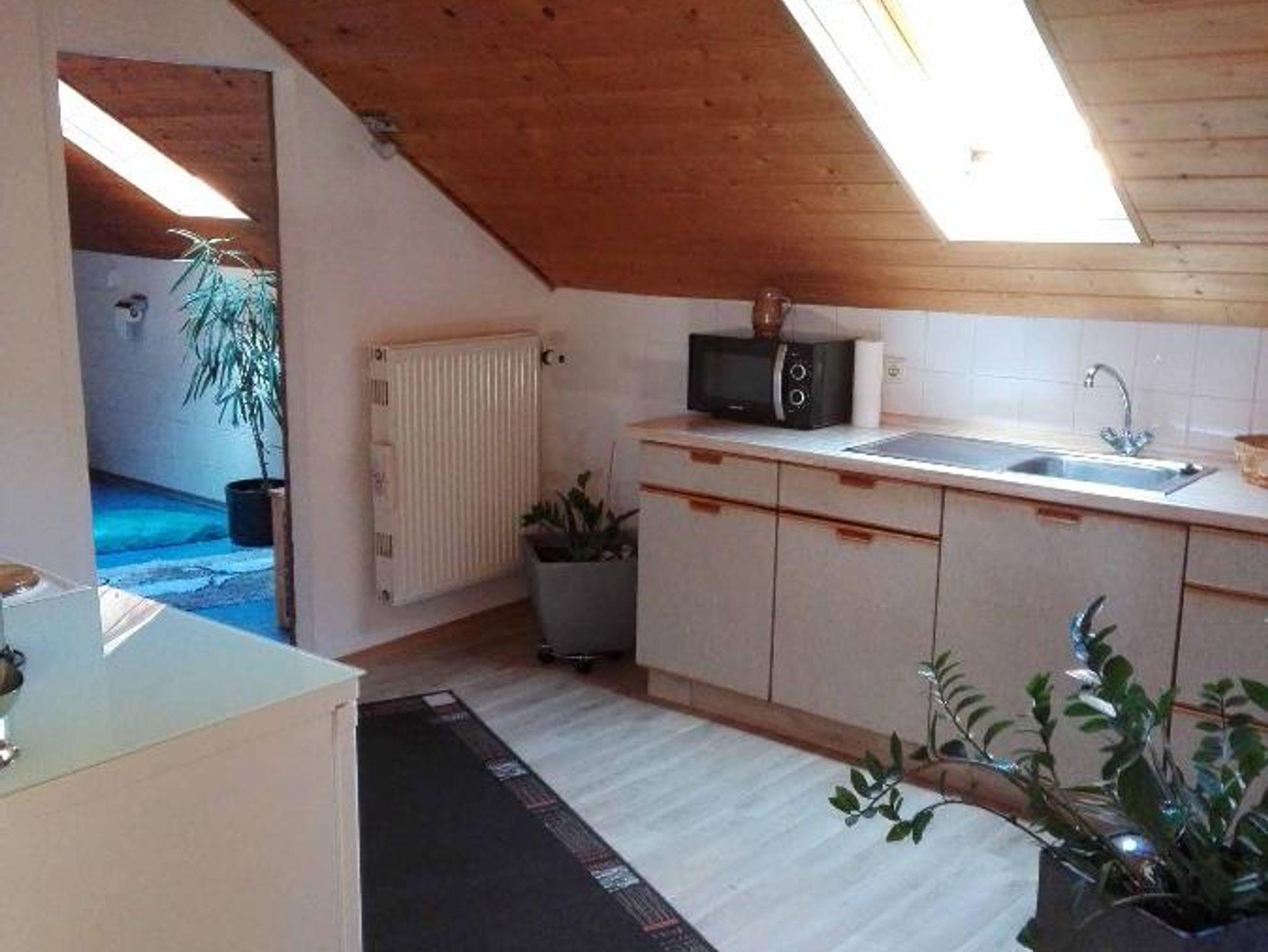 Die Ferienwohnung bietet ca. 65 m² (Mansarde) Wohnfläche bestehend aus einen Schlafraum, Wohnzimmer, Küche und Dusche/WC. Die Wohnung ist um einen weiteren Schlafraum und Dusche mit Toilette für zwei Personen erweiterbar (85 m²). In der Wohnung finden Sie auch einen Fernseher vor. Die Ferienwohnung verfügt außerdem über einen Garten und eine Grillmöglichkeit.
