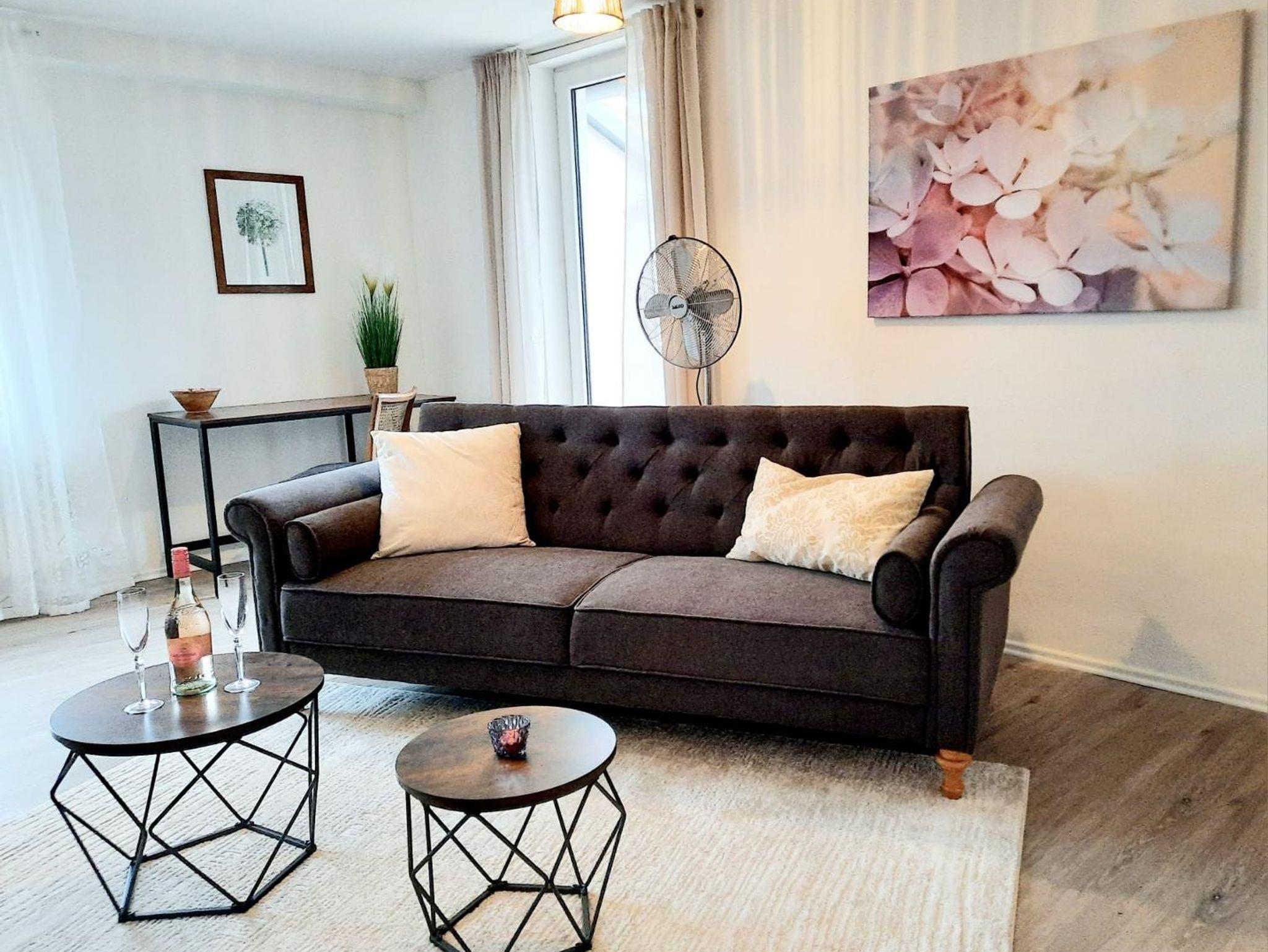 Die Wohnung bietet alle Annehmlichkeiten, die Sie für einen gelungenen Urlaub brauchen. Auf 70qm Wohnfläche erwartet Sie eine großzügige Küche mit einem großen Esstisch, ein Schlafzimmer mit Doppelbett und ein zweites gleichgroßes Schlafzimmer mit zwei Einzelbetten. Genügend Platz zum Verweilen findet sich im geräumigen, geschmackvoll eingerichteten Wohnzimmer, das die Möglichkeit einer weiteren Schlafgelegenheit bietet. Das Badezimmer erfüllt mit seiner großzügigen Dusche und der modernen Gestaltung alle Ihre Wünsche.