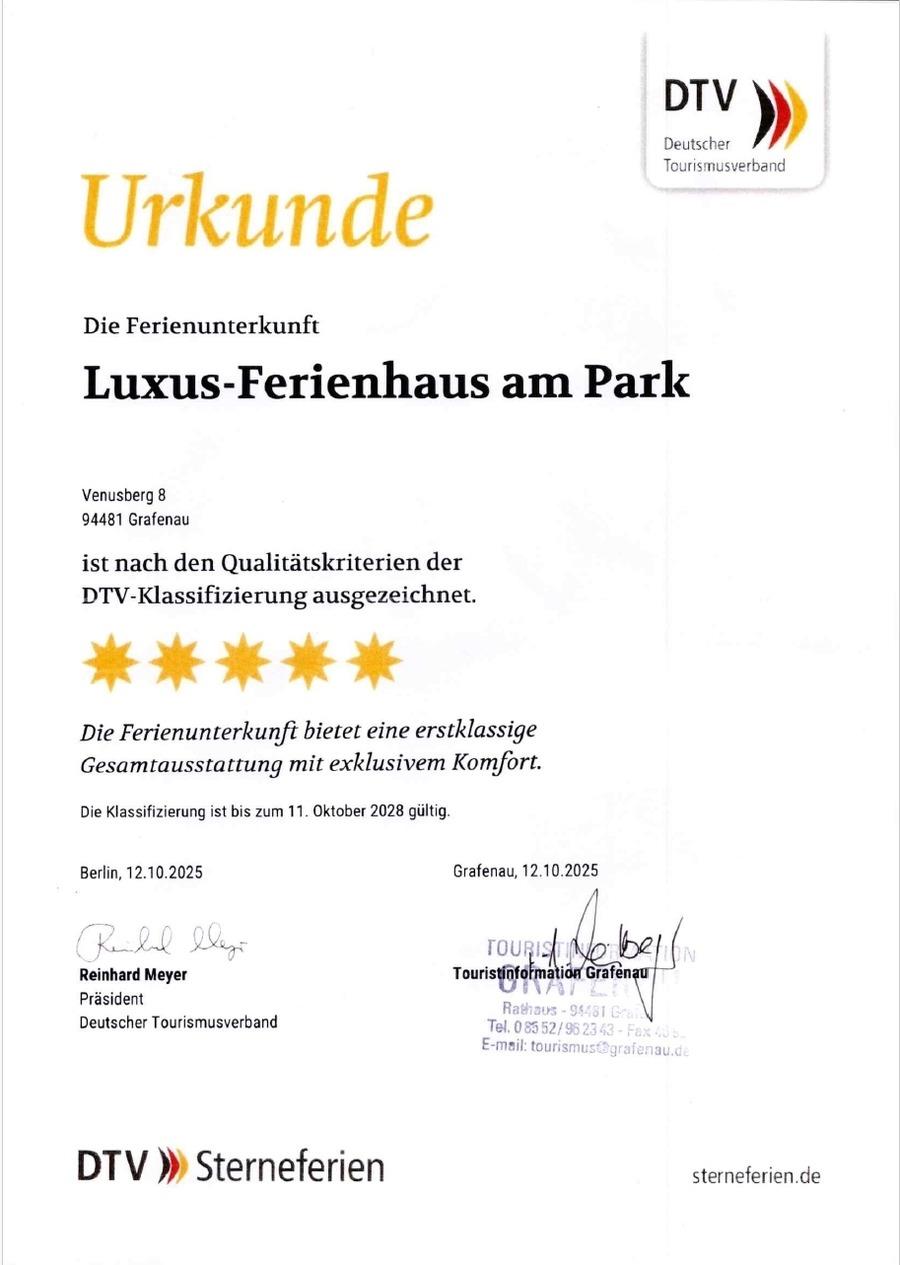 Bäcker, Metzger, Supermarkt sind fußläufig erreichbar, ebenso eine italienische Eisdiele sowie eine gute Auswahl von Restaurants. Familien mit Kindern schätzen den angrenzenden Abenteuerspielplatz, das großzügige Wellenfreibad, den Minigolfplatz. Die "Bärenstadt" Grafenau in Niederbayern liegt etwa 40 Kilometer nördlich von Passau, mitten im Bayerischen Wald. Grafenau ist ein bedeutender Tourismus-Magnet in der Region, insbesondere für Natur-, Wander- und Fahrradfreunde. Kleinere Wanderungen auf die umliegenden Berge können direkt vom Ferienhaus aus durchgeführt werden. Als herausragende Attraktion kann der Nationalpark Bayerischer Wald bezeichnet werden, der in 10 Minuten mit dem Auto erreicht werden kann. Direkt ab Grafenau fährt die Waldbahn über Frauenau nach Zwiesel. In Frauenau gibt das Glasmuseum interessante Einblicke in die Historie der Glasindustrie im Bayerischen Wald mit wechselnden Sonderausstellungen von internationalen Glaskünstlern. Zu jeder Jahreszeit können Städtereisen in das nahegelegene Passau mit der Veste Oberhaus oder in tschechische Krumau, eine Weltkulturerbe-Stadt durchgeführt werden.