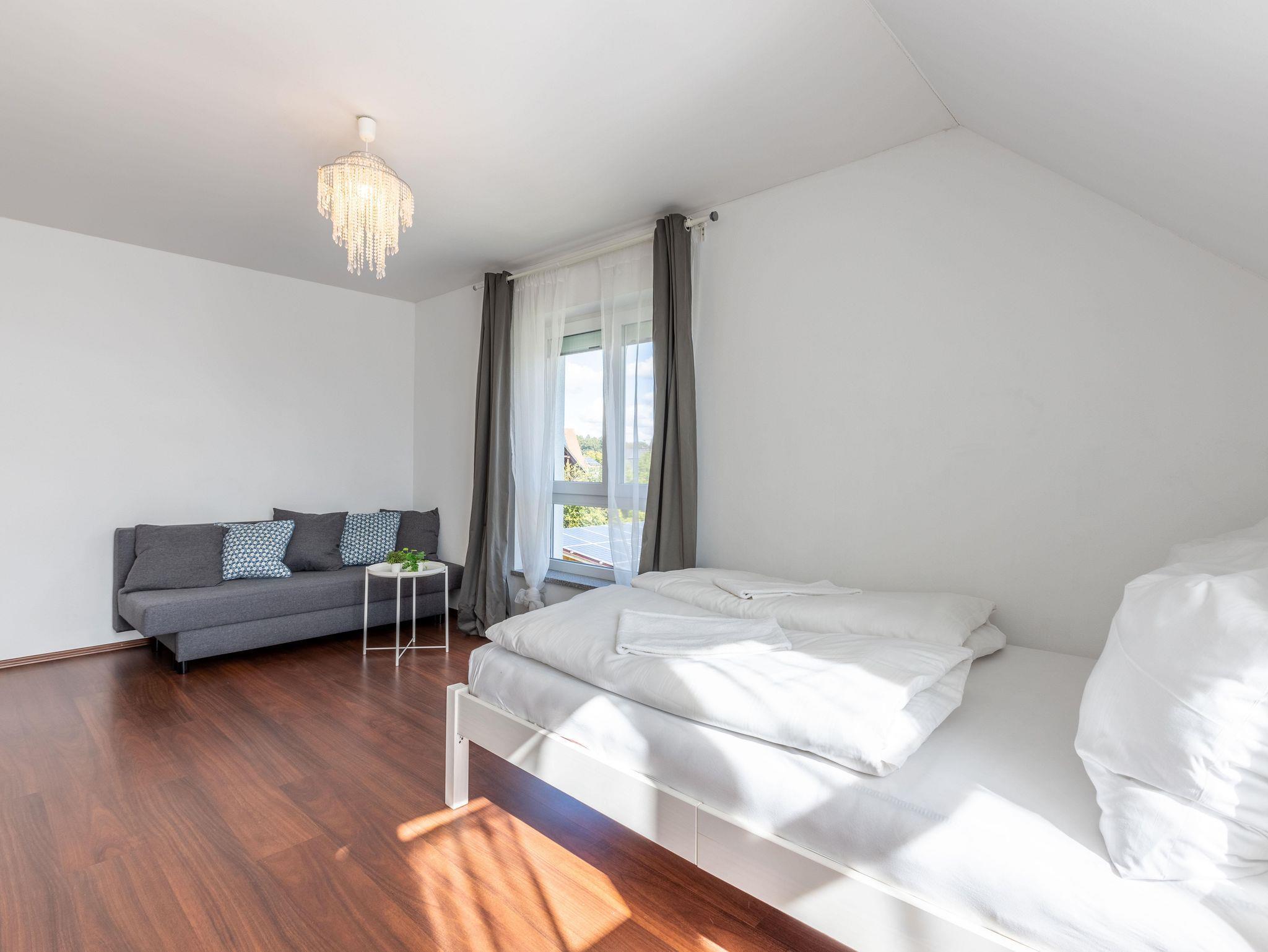 Willkommen in der Villa Grafrath! Das Haus mit riesiger Wohnküche inklusive Klimaanlage, 3 Schlafzimmern und Badezimmer ist circa 150 m2 groß. Außerdem gibt es einen Garten mit einer großzügigen überdachten Terrasse. Hier gibt es mehr als genug Platz für bis zu sechs Personen um eine ruhige Auszeit in der Nähe des Ammersees und Münchens zu genießen. Der Check-in erfolgt flexibel via Smart Lock.