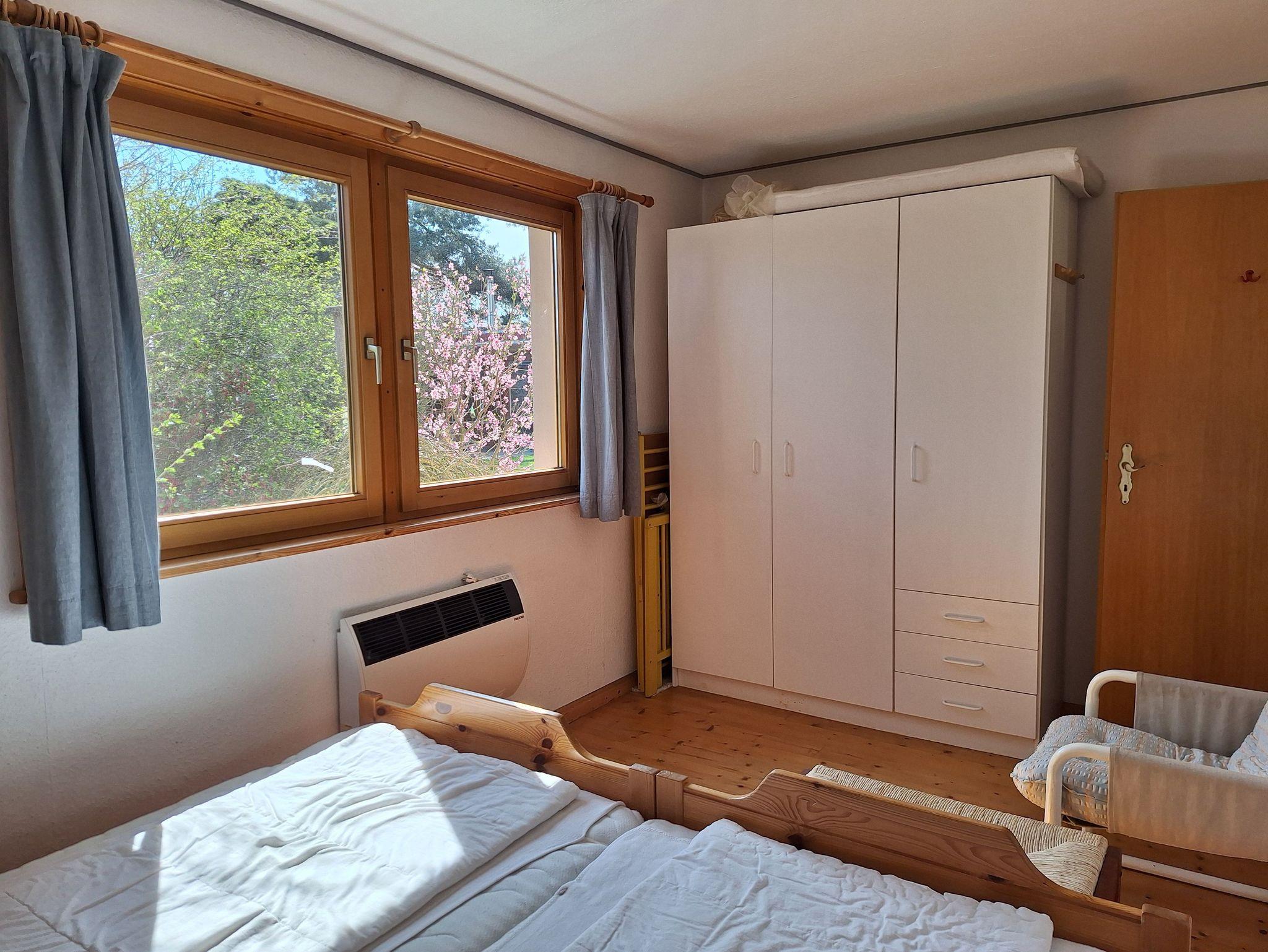 Das Schlafzimmer mit Doppelbett (auch als Einzelbetten stellbar) ist gemütlich eingerichtet. Im Kinderschlafzimmer befindet sich ein Etagenbett.