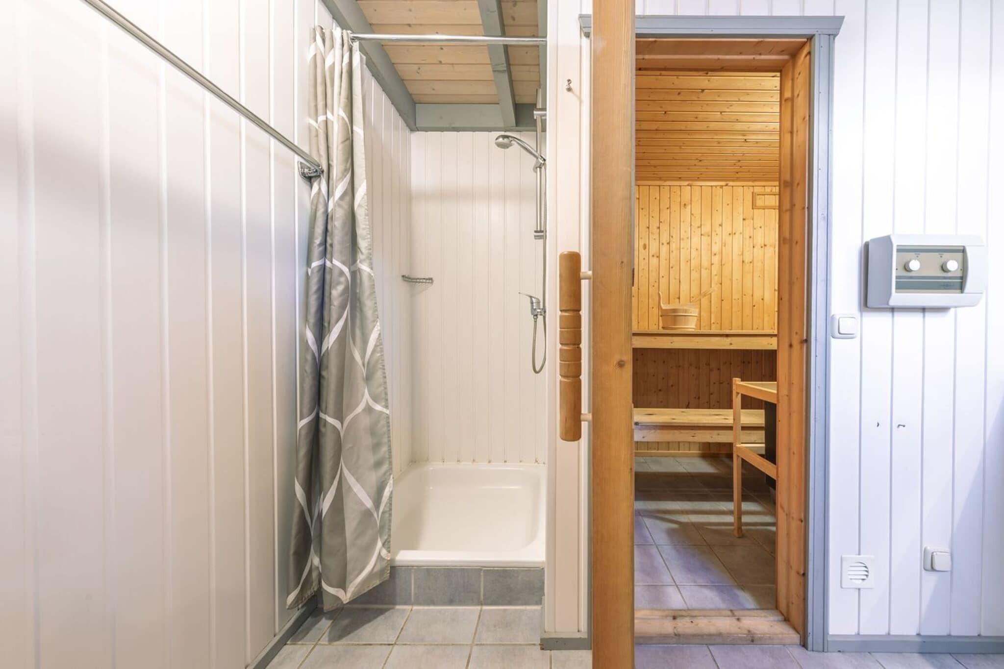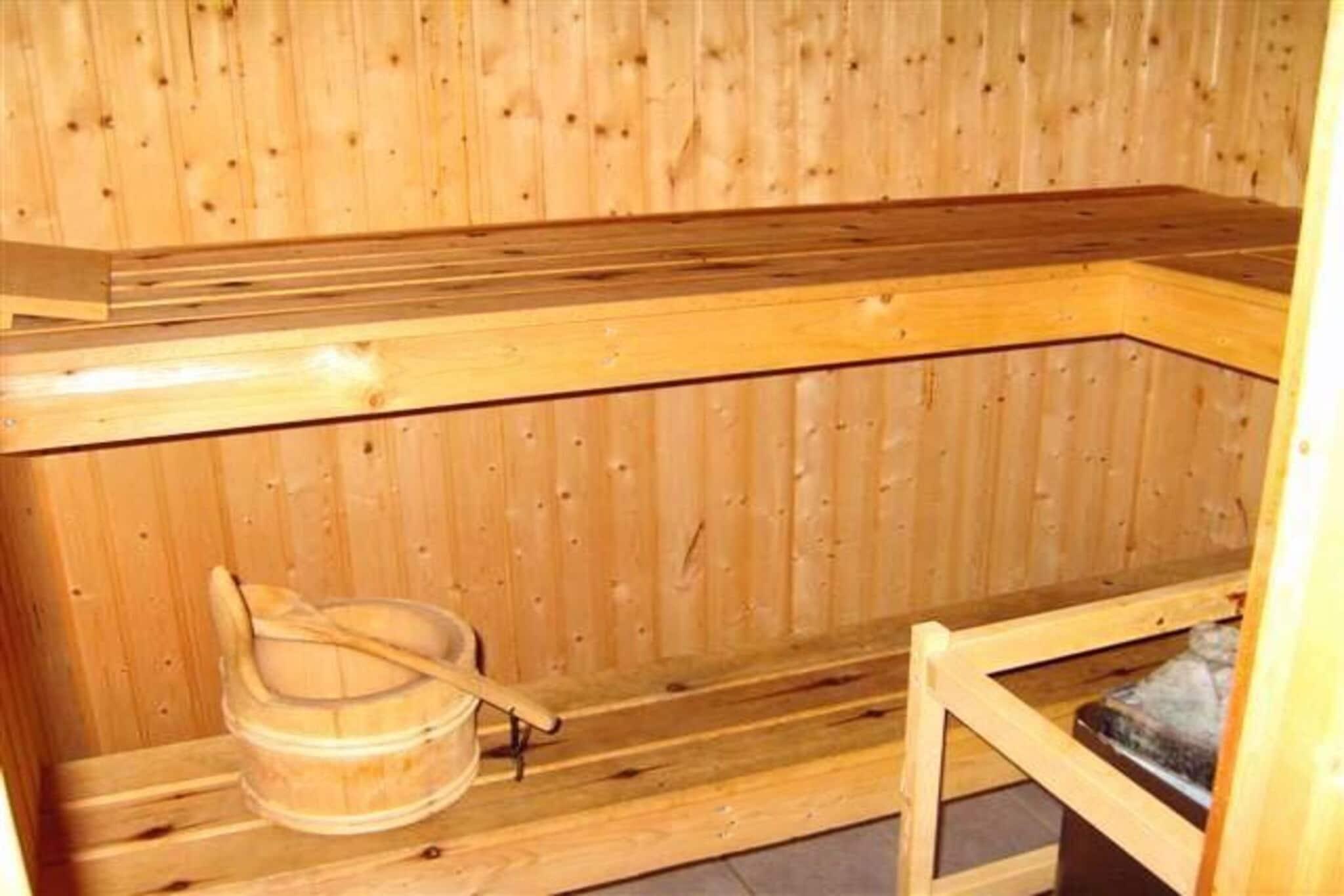 Stueetage: (Stue(Fjernsyn(parabol), pejs, sofahjørne), Køkken(spisebord, kogeplade, elkedel, brødrister, kaffemaskine, ovn, mikrobølgeovn, køleskab(+ fryser)), soveværelse(dobbeltseng), badeværelse(badekar, bruser, sauna(privat), håndvask, toilet), pulterkammer) På 1. etage: (soveværelse(enkeltseng, enkeltseng), svalegang soveværelse(halvandenmandsseng)) tørretumbler(deles med andre gæster, betalt), vaskemaskine(deles med andre gæster, betalt), varme(elektrisk), terrasse(overdækket), have, havemøbler, solstole, parkering, swimmingpool(deles med andre gæster, betalt), barnestol, baby crib(paid), Håndklæder/sengelinned (ekstra gebyr)