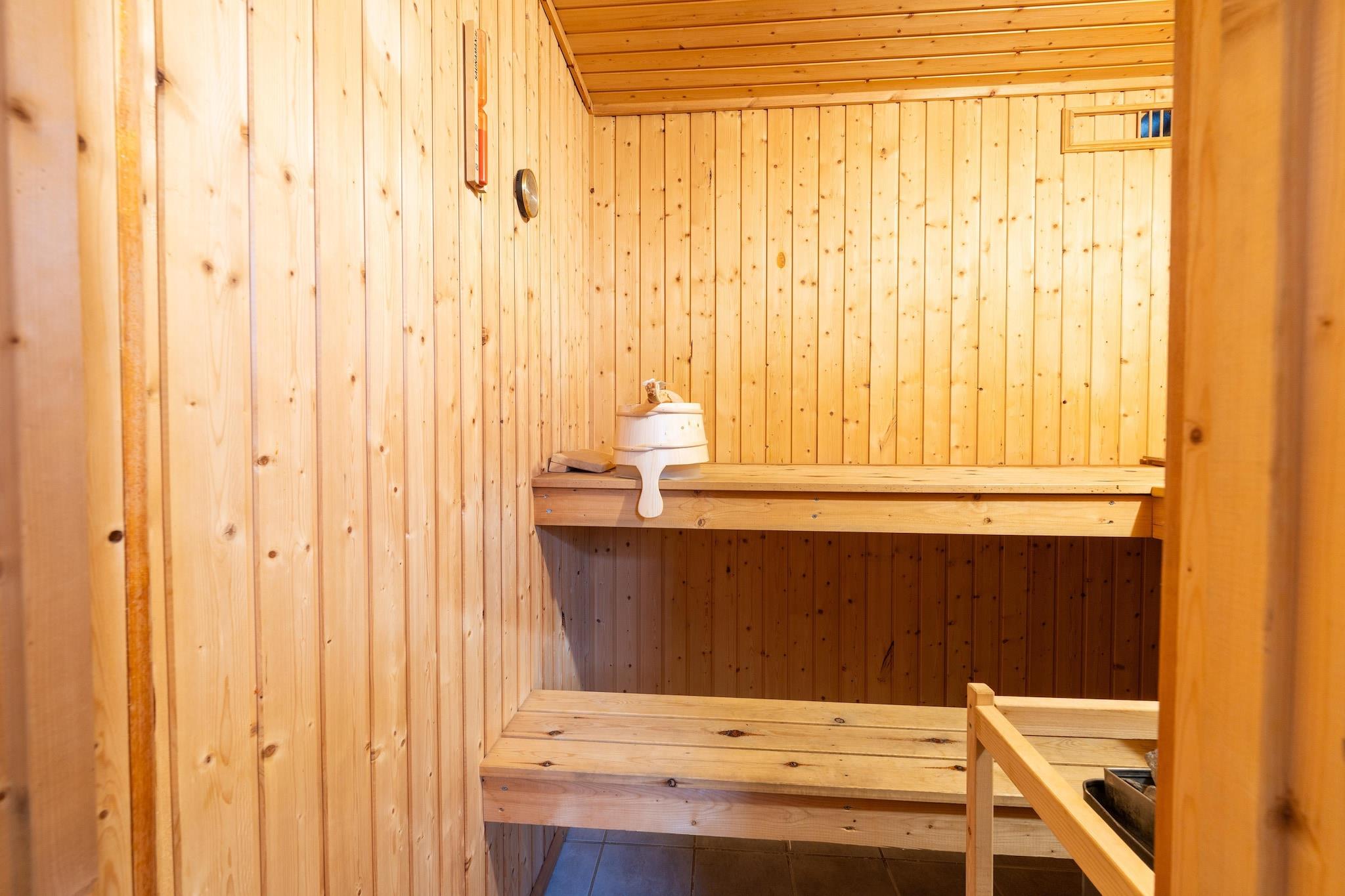 Stueetage: (Stue(Fjernsyn(parabol), pejs, sofahjørne), Køkken(spisebord, kogeplade, elkedel, brødrister, kaffemaskine, ovn, mikrobølgeovn, køleskab(+ fryser)), soveværelse(dobbeltseng), badeværelse(badekar, bruser, sauna(privat), håndvask, toilet), pulterkammer) På 1. etage: (soveværelse(enkeltseng, enkeltseng), svalegang soveværelse(halvandenmandsseng)) tørretumbler(deles med andre gæster, betalt), vaskemaskine(deles med andre gæster, betalt), varme(elektrisk), terrasse(overdækket), have, havemøbler, solstole, parkering, swimmingpool(deles med andre gæster, betalt), barnestol, baby crib(paid), Håndklæder/sengelinned (ekstra gebyr)