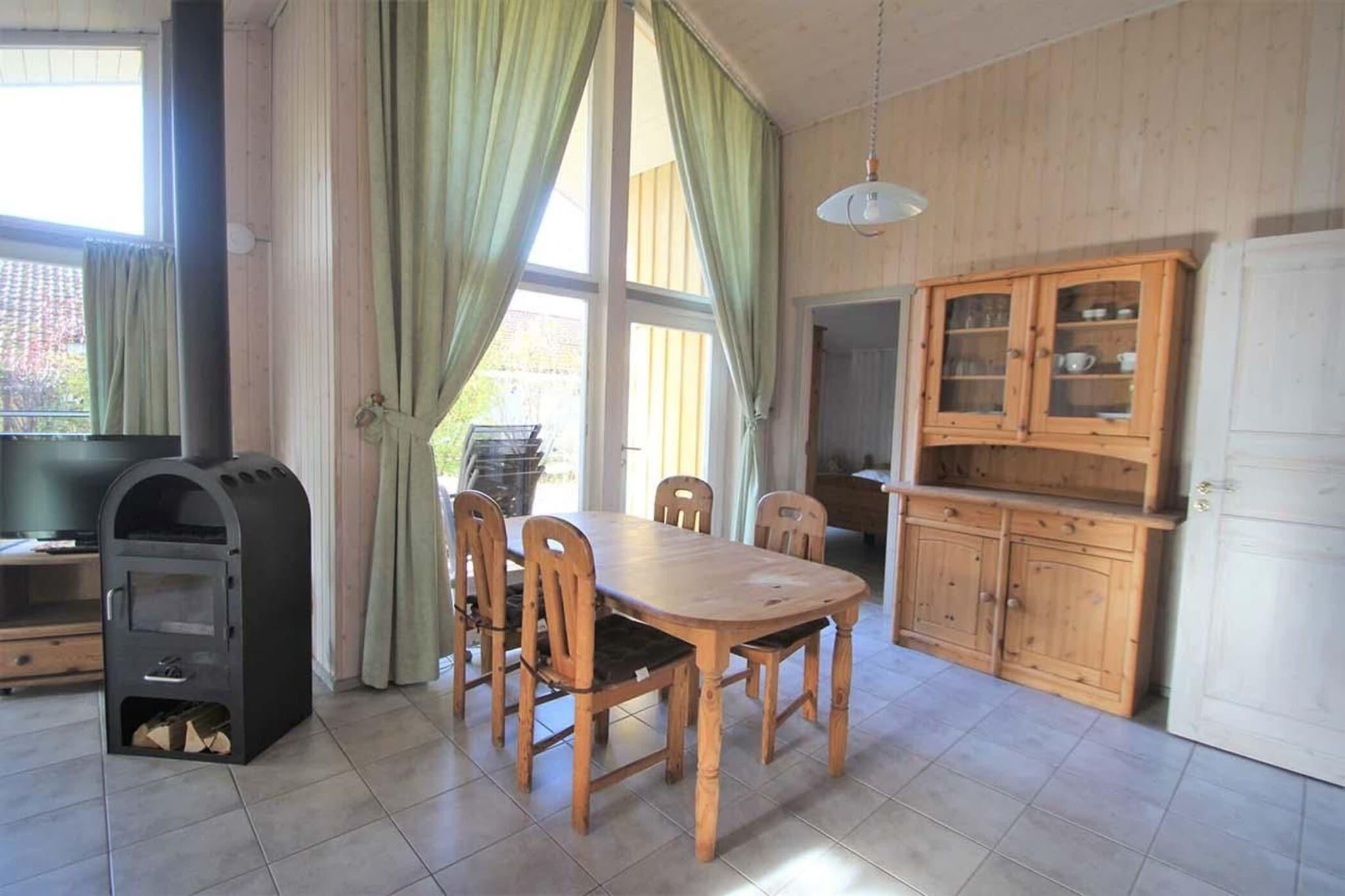Stueetage: (åbent køkken(kogeplade(Komfur med fire kogeplader, elektrisk), elkedel, brødrister, kaffemaskine, ovn, mikrobølgeovn, opvaskemaskine , køleskab(+ fryser)), stue / spisestue(Fjernsyn(parabol), spisebord, pejs, sofahjørne), soveværelse(enkeltseng, enkeltseng), soveværelse(dobbeltseng), badeværelse(Bubble bath, bruser, sauna(privat), håndvask, toilet), pulterkammer) tørretumbler(deles med andre gæster, betalt), vaskemaskine(deles med andre gæster, betalt), varme(elektrisk), terrasse, have, havemøbler, solstole, grill(trækul), parkering, swimmingpool(deles med andre gæster, betalt), barnestol, baby crib(paid), Håndklæder/sengelinned (ekstra gebyr)