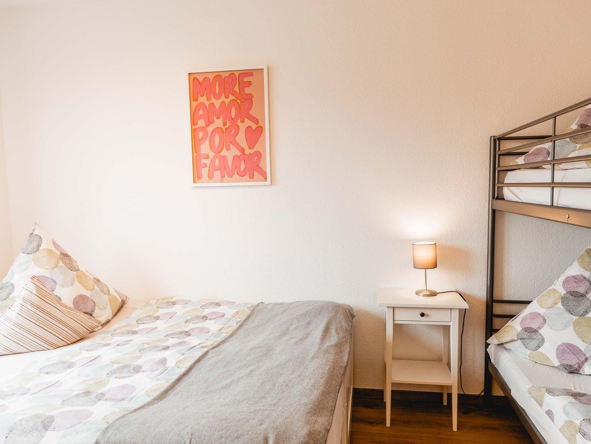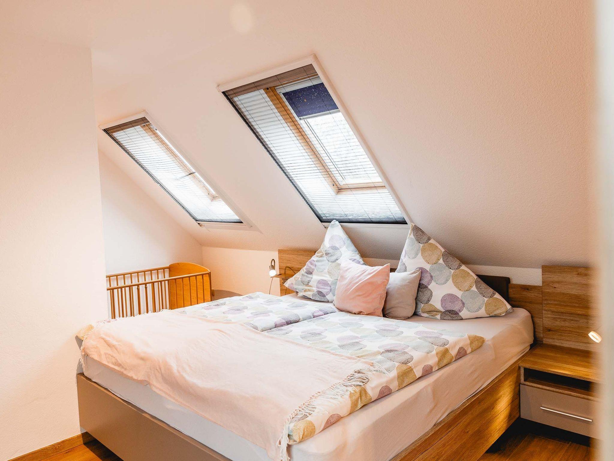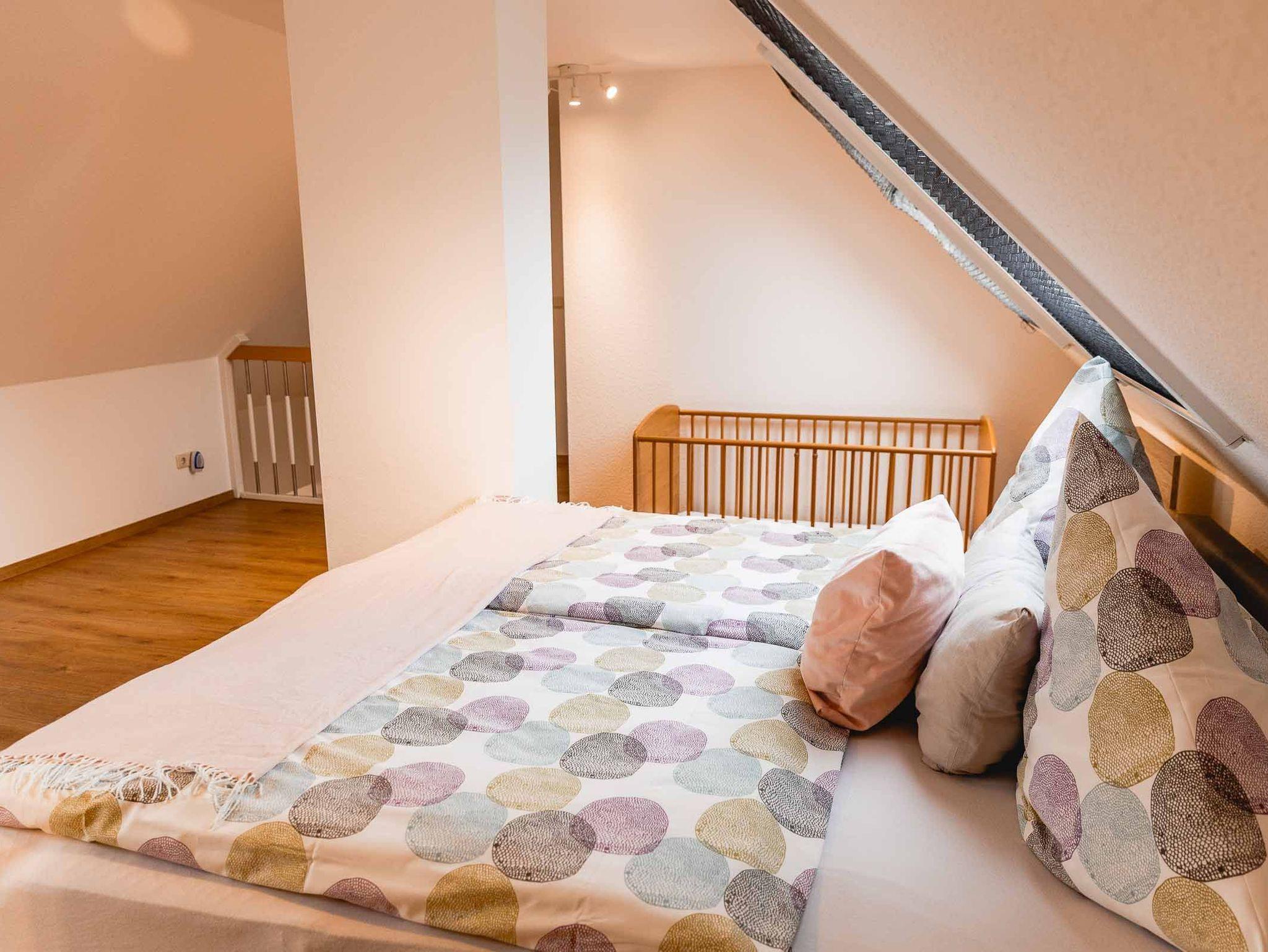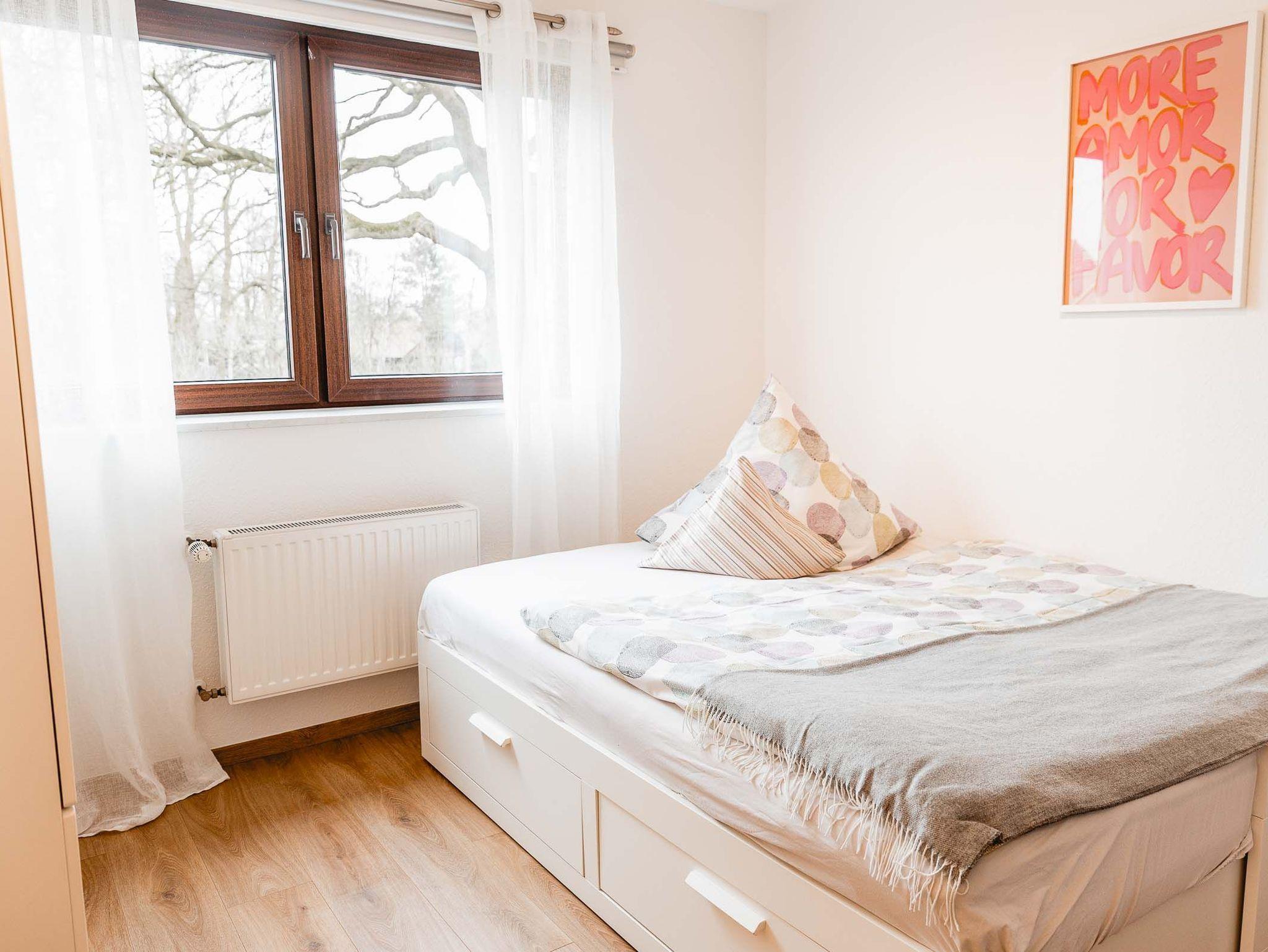Die Wohnung Wümme befindet sich im OG unseres Haupthauses und bietet auf 80 qm Platz für bis zu sechs Personen. Aufgeteilt ist die Wohnung in zwei Schlafzimmer (1 SZ mit Doppelbett und 1 SZ mit zwei Einzelbetten, die sich jeweils zu einem vollständigen Doppelbett ausziehen lassen), einem großen Wohn/Essbereich mit komplett ausgestatteter Küchenzeile, einem Bad mit Tageslicht und einem Abstellraum.