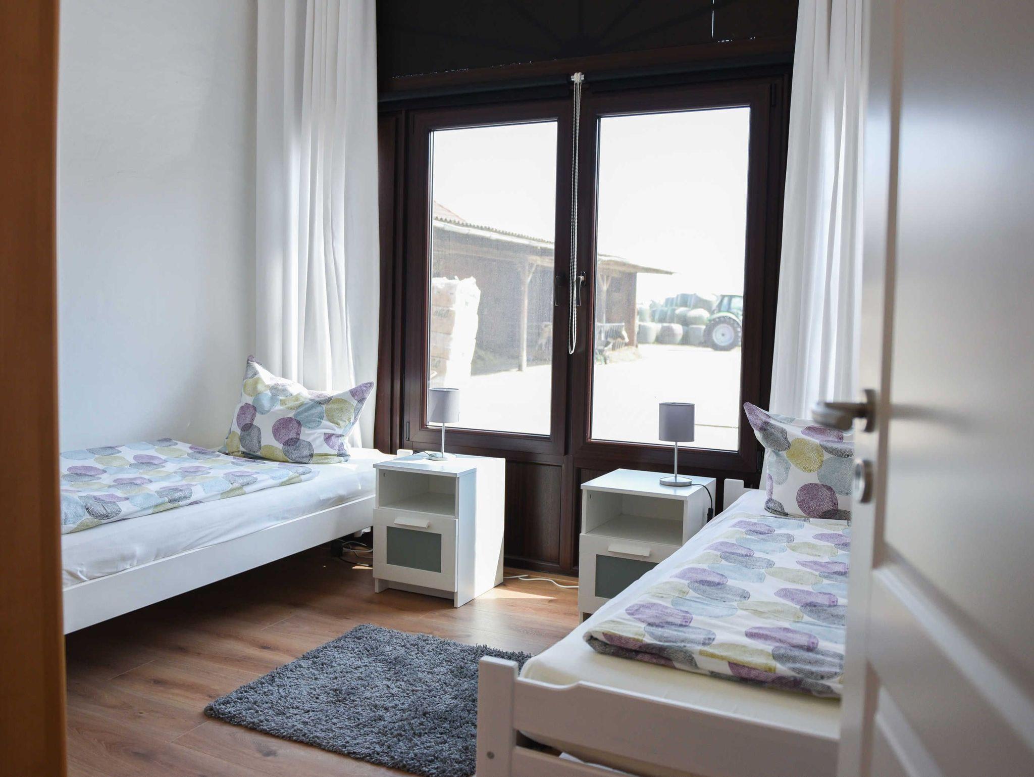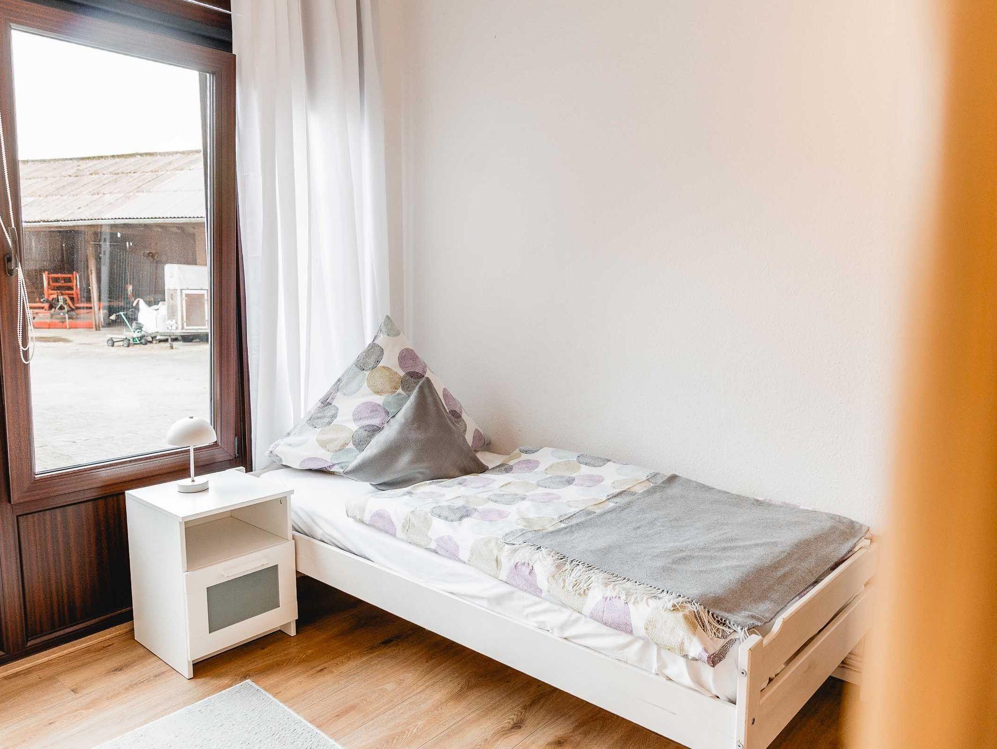 • 1 Schlafzimmer mit zwei Einzelbetten und Blick direkt auf den Hof